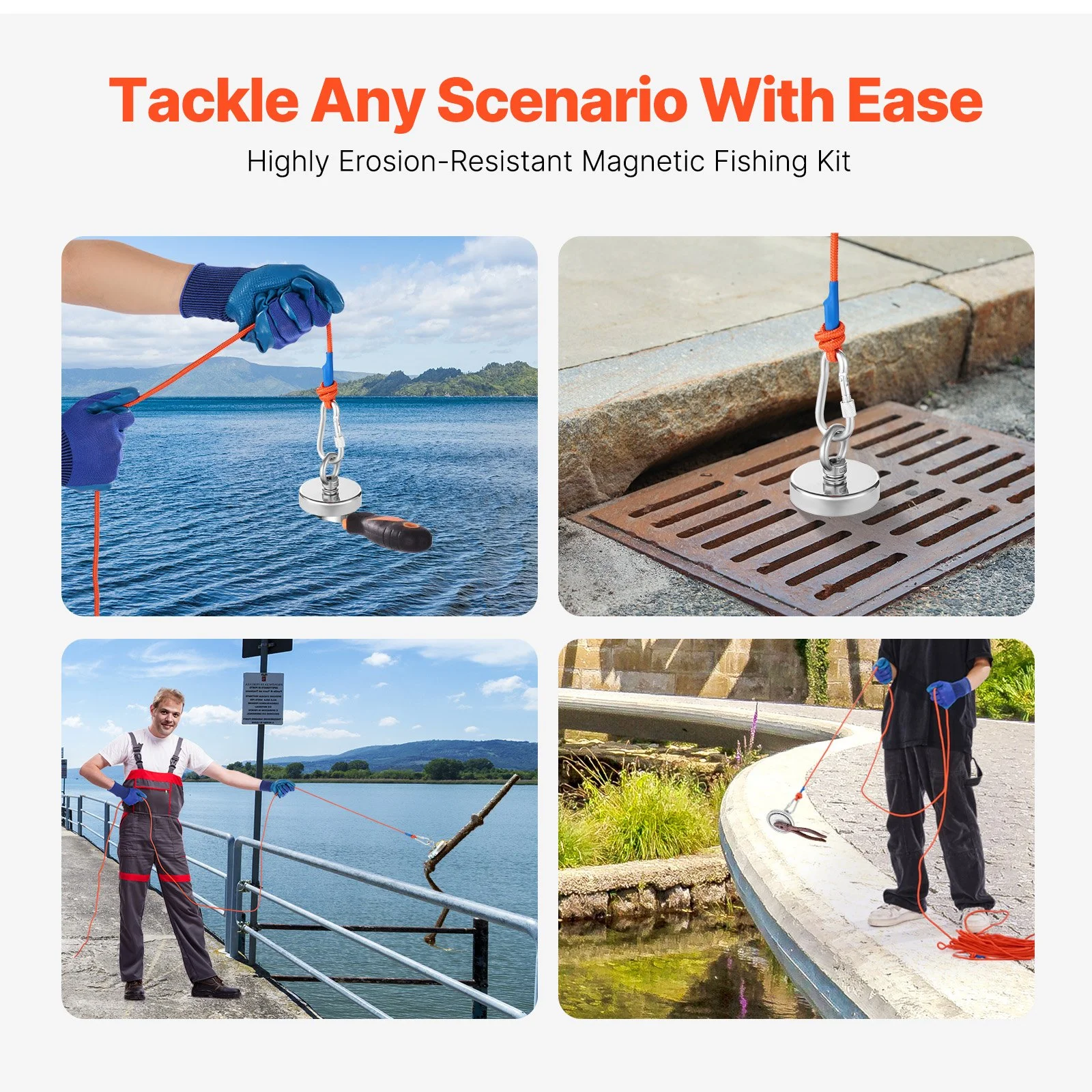 This heavy duty magnet uses N35 rare earth neodymium magnets, offering a pull strength of 700 LBS/318 Kg, allowing for easy retrieval of metal objects even in complexor low-visibility underwater environments.