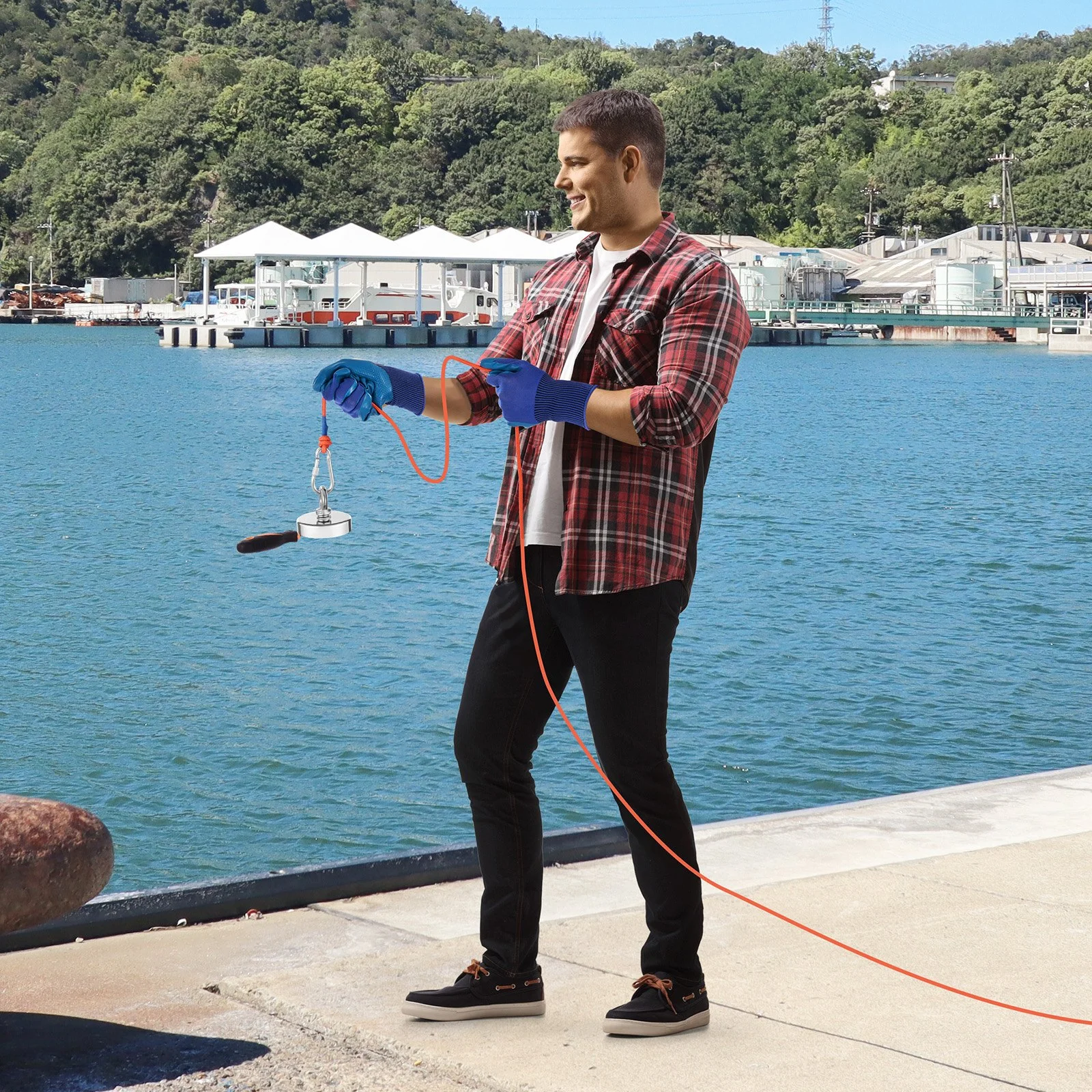 This super strong magnet is ideal for outdoor treasure hunters and professional retrieval workers in rivers, lakes, ponds, and other environments. It can also be used to secure or store metal items in home warehouses or garages.