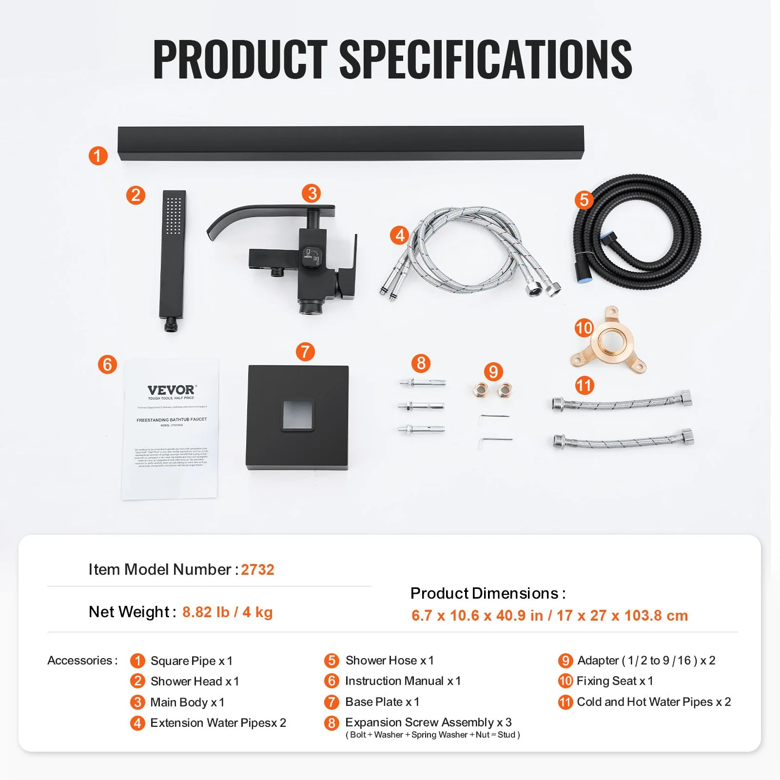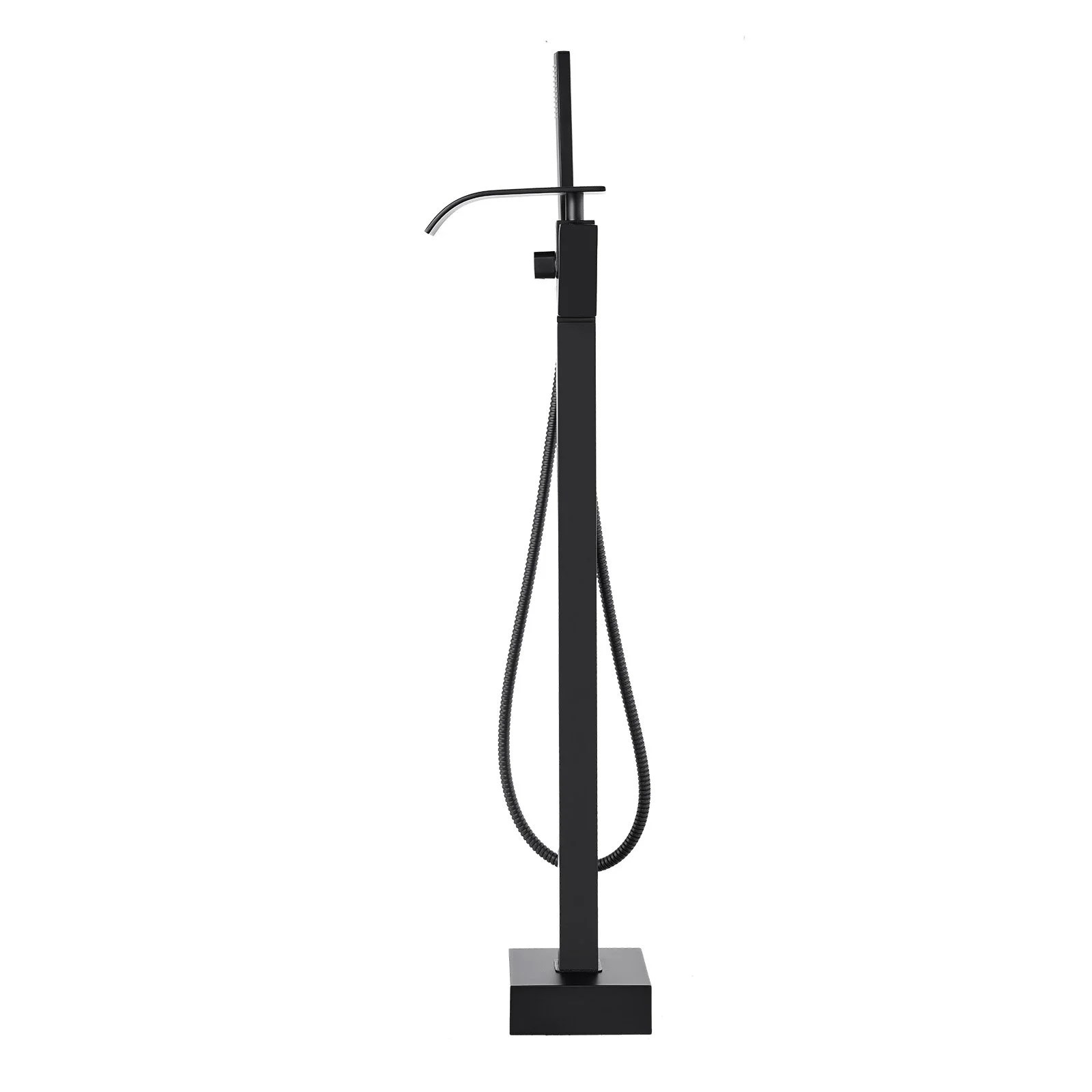 This freestanding bathtub faucet undergoes anti-corrosion and anti-rust matte black treatment, exuding a luxurious feel with its matte texture, especially in black. Key components are made of high-quality brass for durability, and the stable triangular base ensures it stands firmly. Plus, the square decorative cover adds style while keeping dust away. Elevate your bathroom effortlessly!