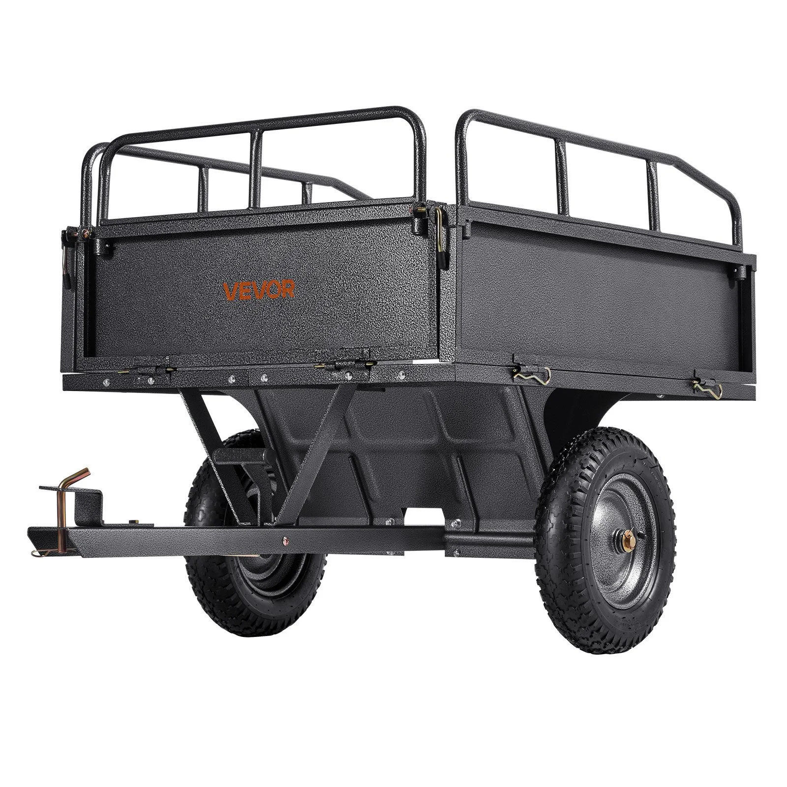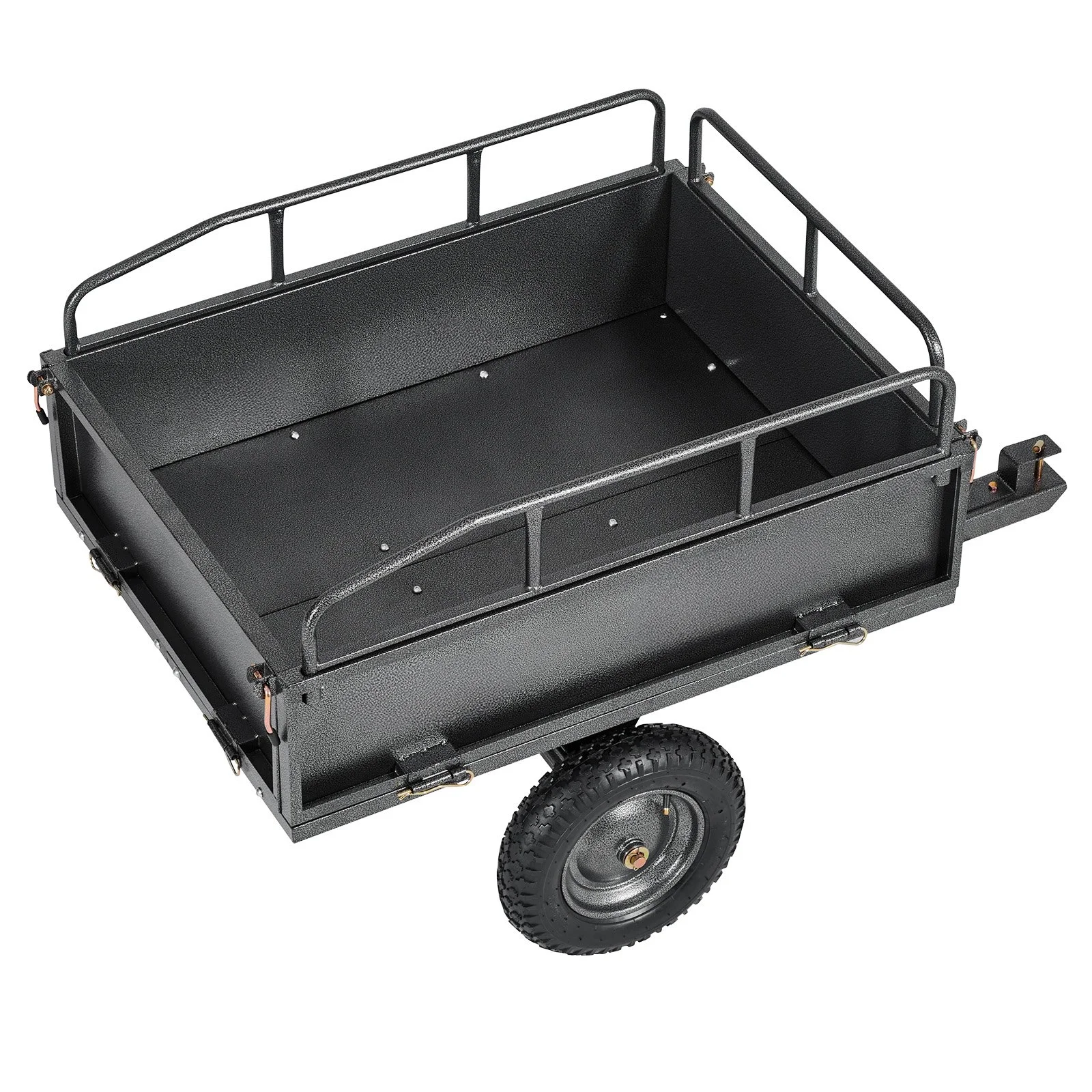 With a 500lbs weight capacity and 10 cubic feet of space, this atv trailer handles garden waste and heavy materials like soil, branches, and fertilizer with ease. The three-sided guardrail design enhances storage space, reducing multiple trips and improving work efficiency.
