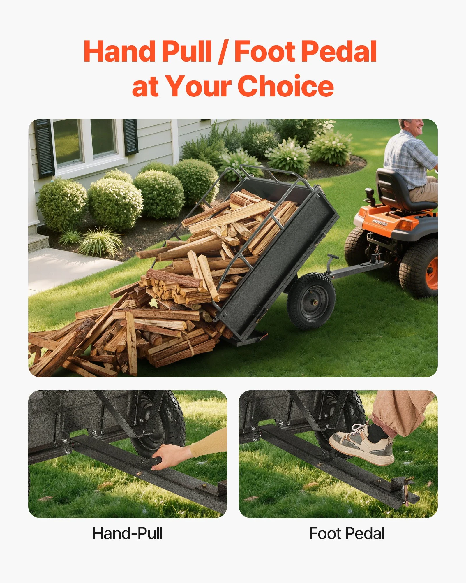 Garden Utility Trailer, 17 Cu. Ft & 272 kg Capacity, ATV UTV Hauling Trailer, Tow Behind Steel Dump Cart with 16" Tires, Hand Pull or Foot Pedal, Heavy Duty Yard Trailers for Lawn Mower Tractor