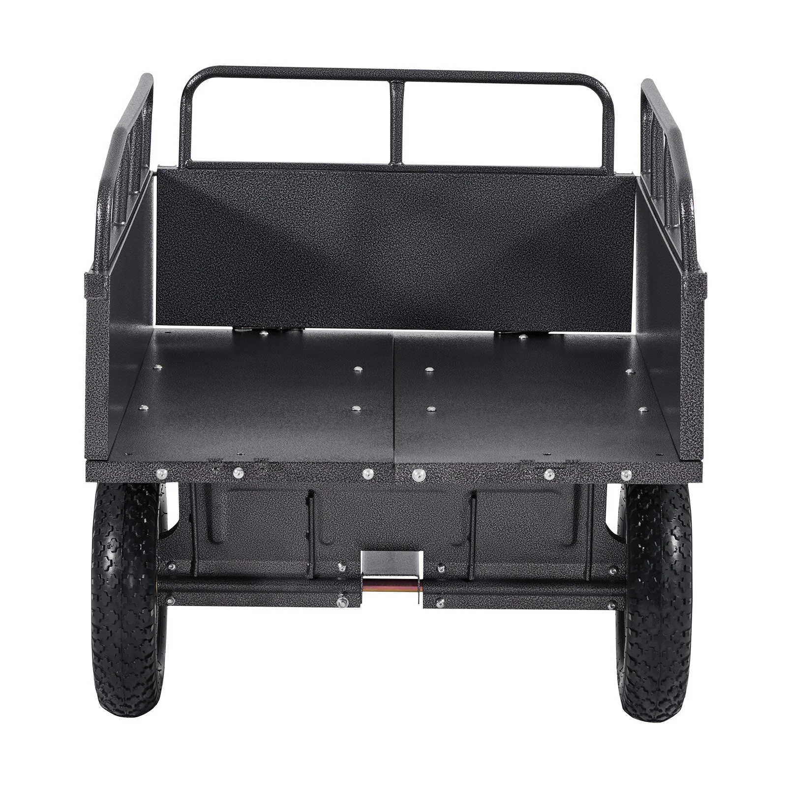 Unlike most yard trailers, this one features 1mm thick side panels and reinforced ribs for added strength. The bottom is supported by 8 reinforcement ribs, improving overall load capacity and preventing deformation. The upgraded hammer-tone paint finish ensures better adhesion and durability.