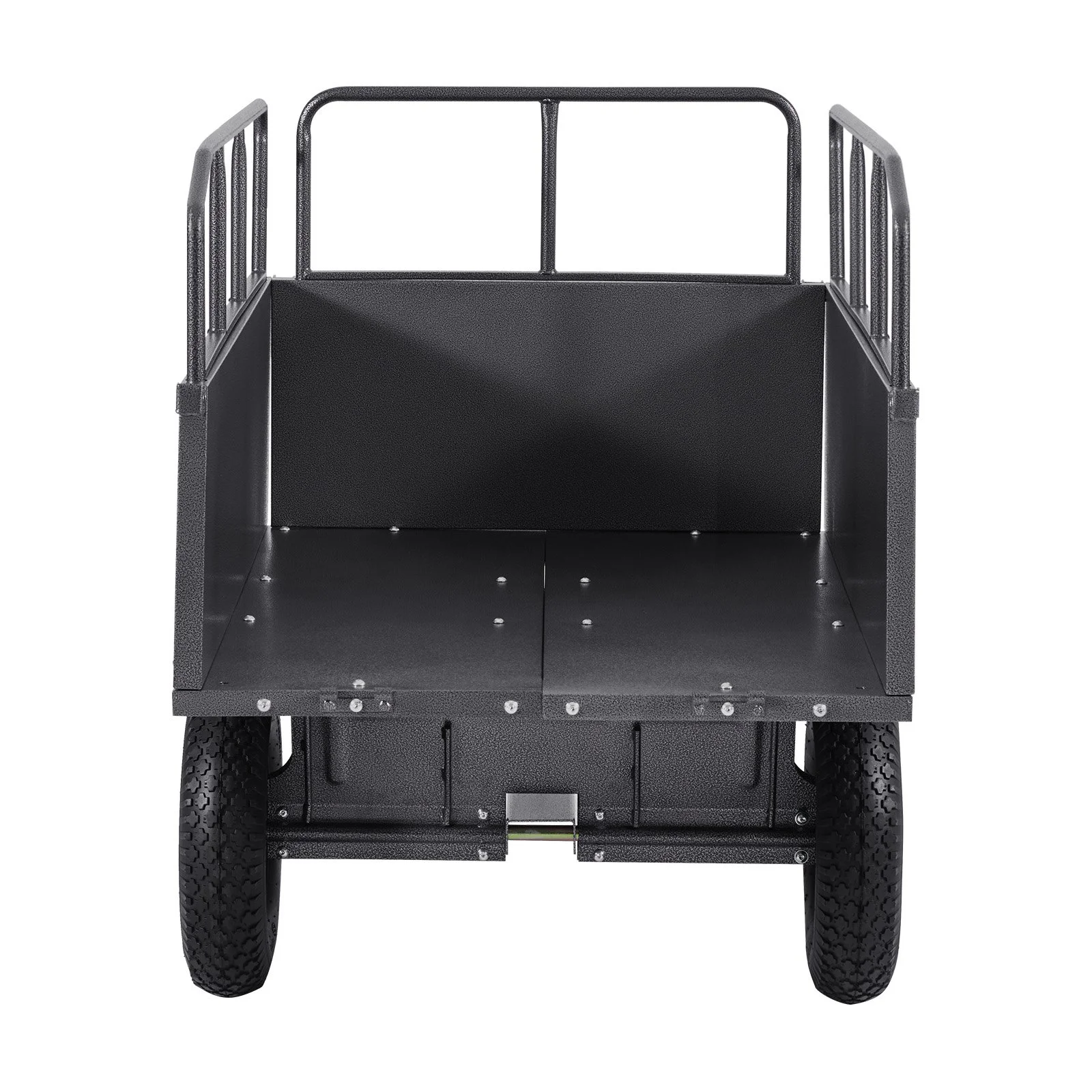 Unlike most yard trailers, this one features 1mm thick side panels and reinforced ribs for added strength. The bottom is supported by 8 reinforcement ribs, improving overall load capacity and preventing deformation. The upgraded hammer-tone paint finish ensures better adhesion and durability.