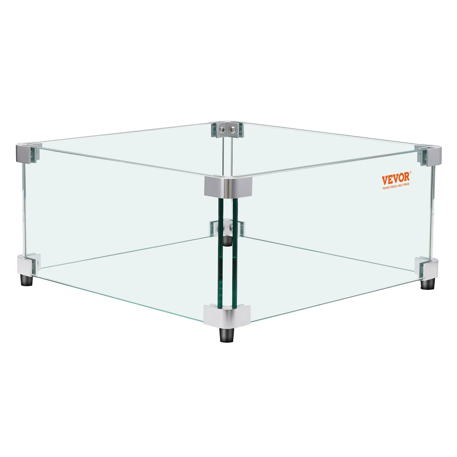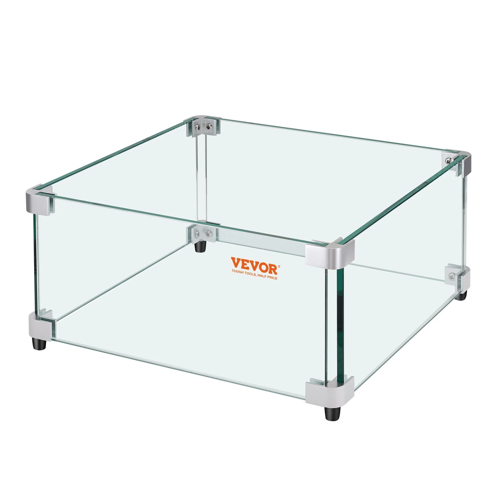 VEVOR Glass Wind Guard for Rectangular Fire Pit Table 924 x 417 x 191 mm, 8mm Thick and Sturdy Tempered Glass Panel with Hard Aluminum Corner Bracket & Rubber Feet, Easy to Assemble