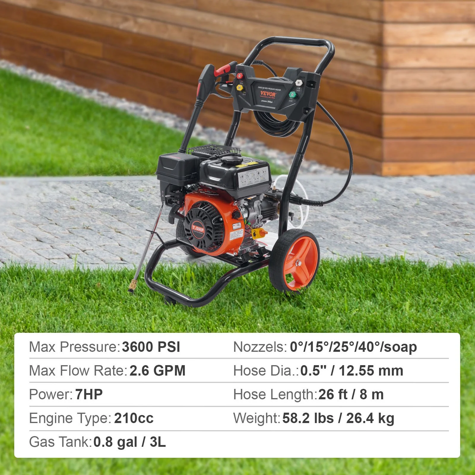 The gas pressure washer comes with 5 quick-connect metal spray nozzles ( 0��/ 15��/ 25��/ 40��/ Soap Nozzle ) , ranging from high-impact water jets to gentle sprays. Definitely best suited for your different cleaning tasks and saves unnecessary expenses.