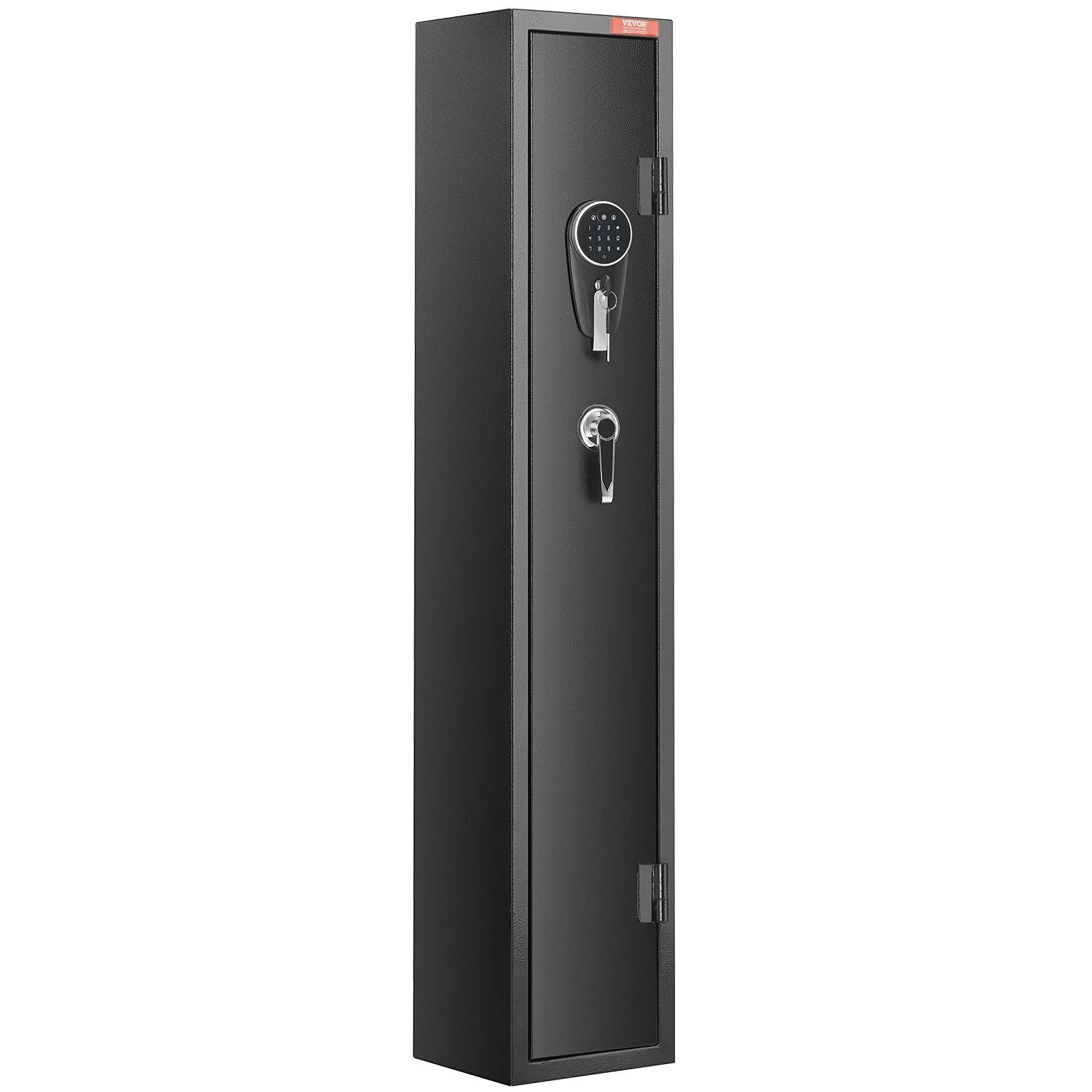 Our rifle gun safe can accommodate up to five rifles up to 51" long. The gun rack is adjustable and detachable for added flexibility. The safe also includes a 4-gun pistol rack and three bullet cases, helping keep all your firearms and accessories organized. Suitable for Ruger Mini-14 Tactical, Kel-Tec SUB-2000, SIG MPX, CZ Scorpion EVO 3.