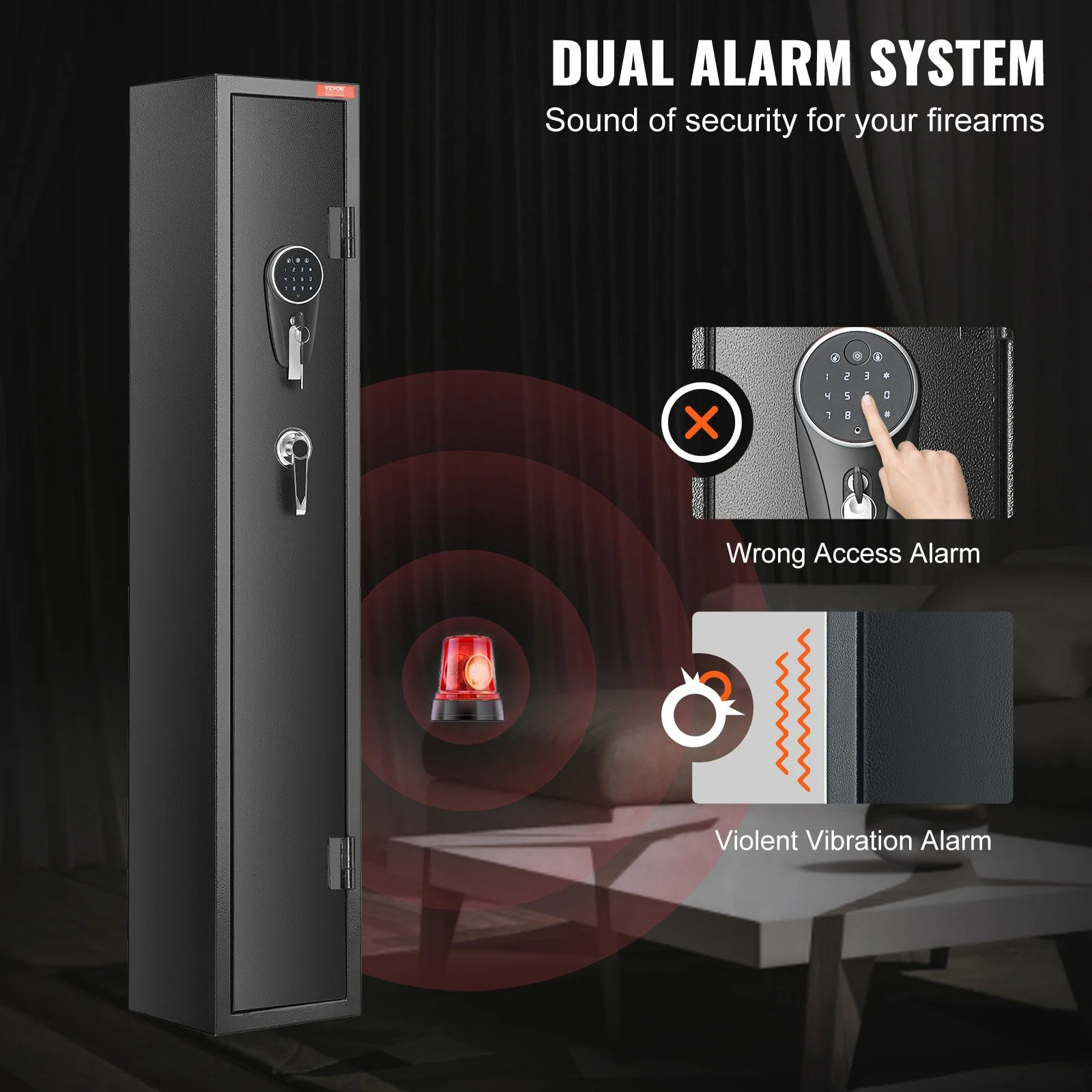 Our gun safe for rifles includes an advanced alarm system that triggers a 30-second alarm if an incorrect password is entered five times consecutively or if it detects a violent impact. For discreet access, activate silent mode by pressing 11#.