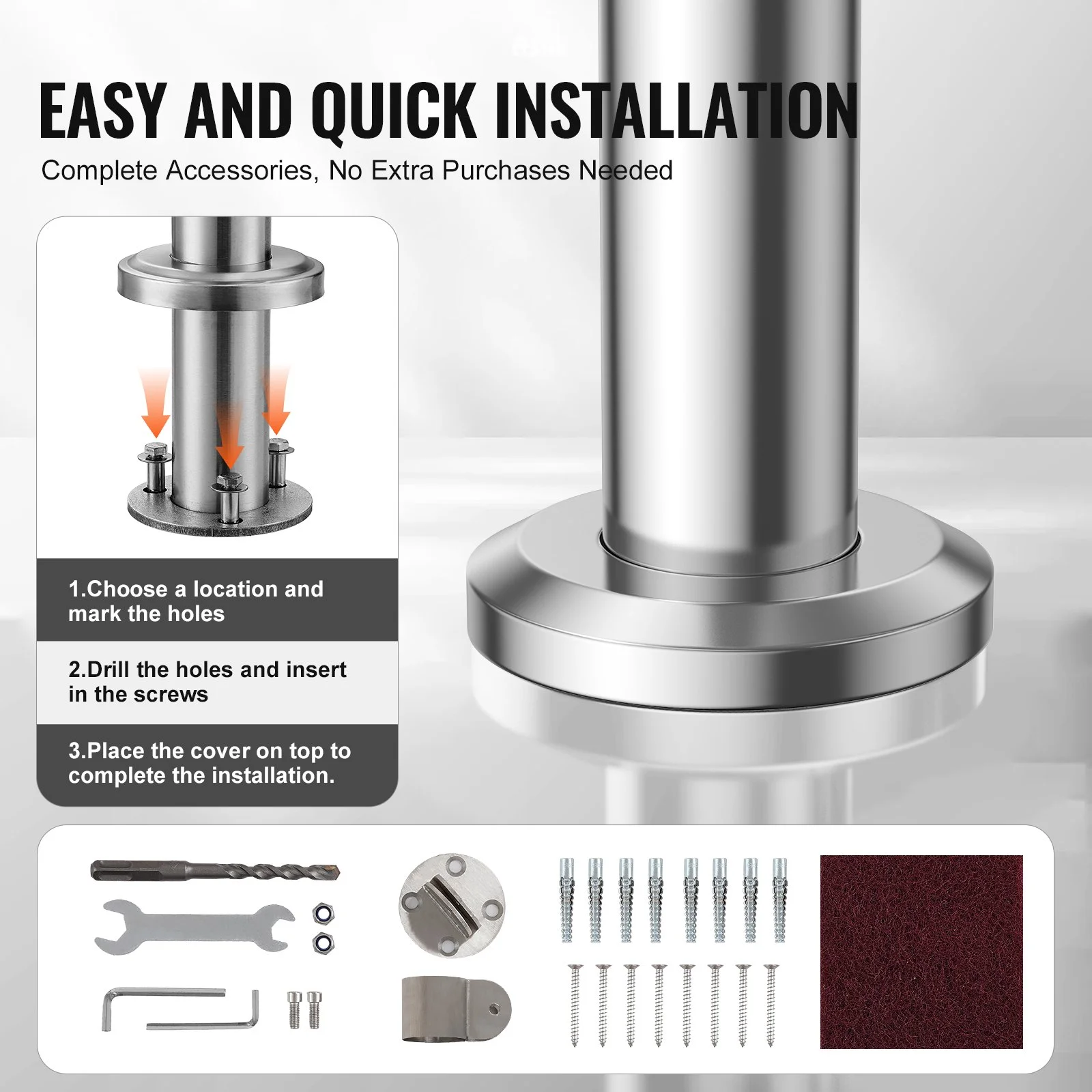 Equipped with stainless steel expansion bolts for double reinforcement and enhanced stability. Additionally, a user-friendly manual is included to make the installation process straightforward and hassle-free.