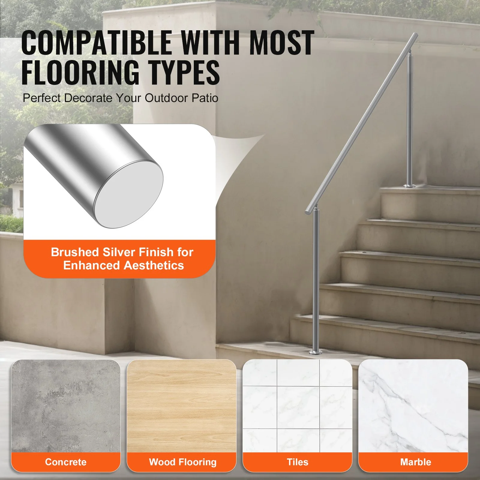 This outdoor stair railing can be installed on concrete, wood floors, tiles, marble, and other solid surfaces. Its unique design complements various stair types, ensuring both functionality and style.