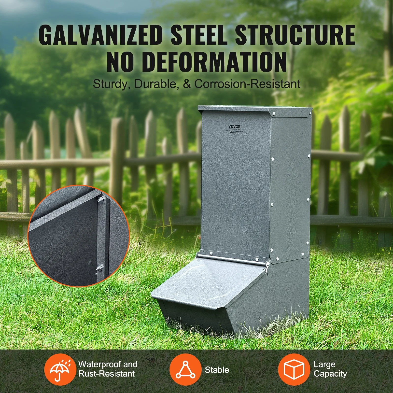 Made from quality galvanized steel, the hog feeder is sturdy and durable. The rust and corrosion-resistant hog feeder adapts to harsh outdoor environments, ensuring long-lasting use.