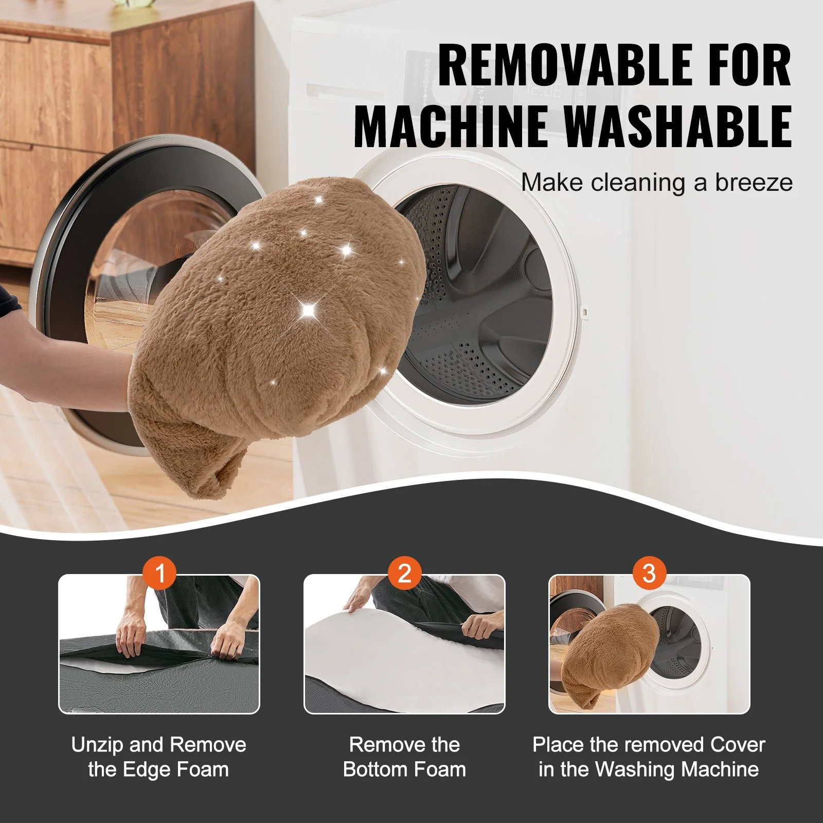 With a zippered cover, our dog bed for humans is easy to remove and requires no assembly. For cleaning, simply unzip, remove the plush cover, and machine wash, which is simple and hassle-free.