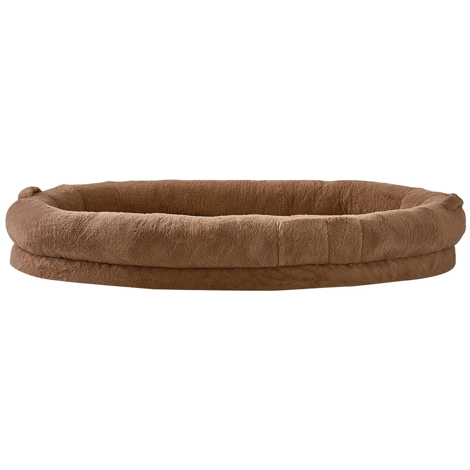 The human-size dog bed features side handles and a storage bag for easy transport. Side pockets offer practical storage for phones, books, and more. After use, vacuum pack it into the storage bag and place it anywhere in your home, from the bedroom to the living room, game room, or study.