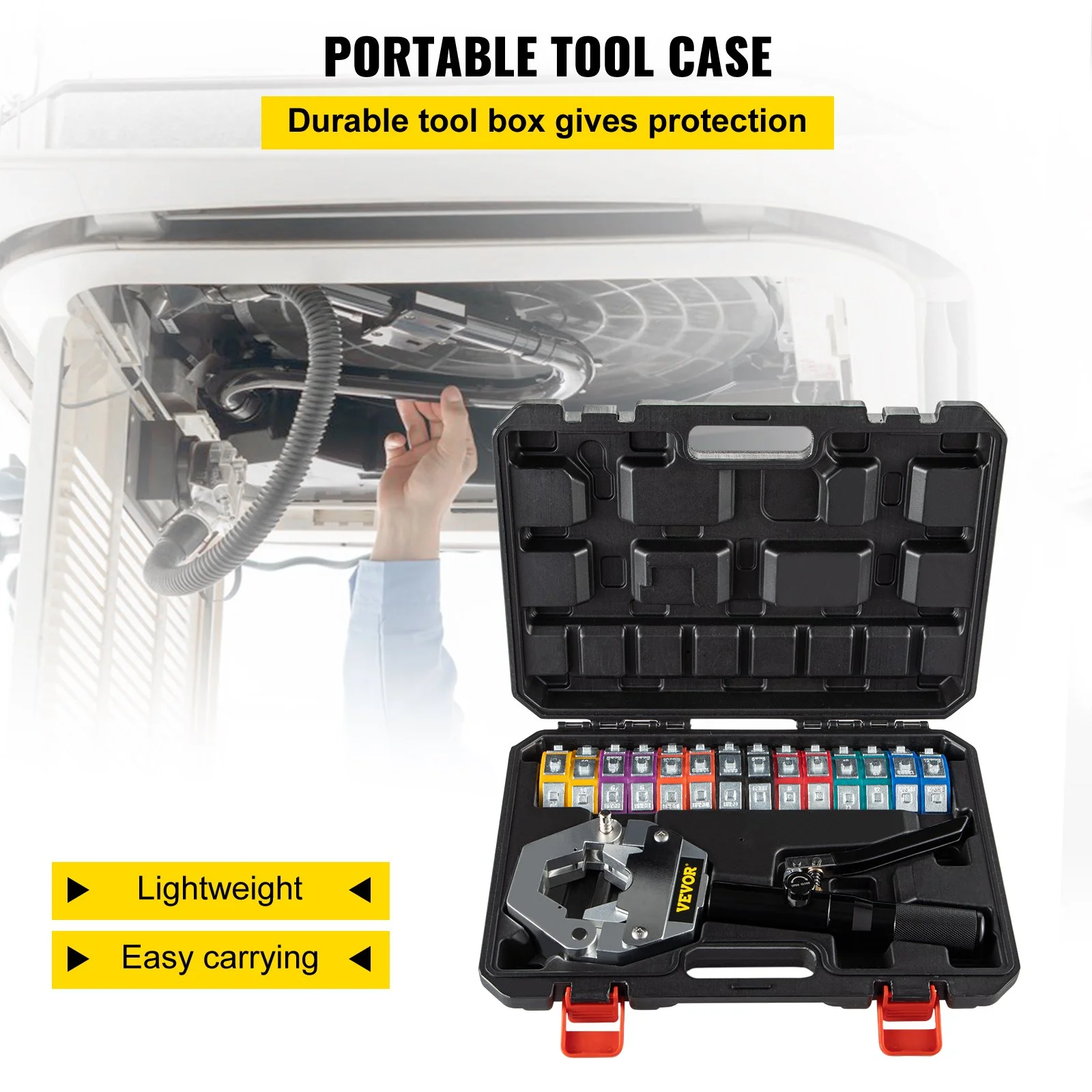 One-person operation saves your time and energy. Besides, the crimping tool kit is stored in a plastic toolbox, reducing the possibility of missing parts. It is compact and easy to carry.