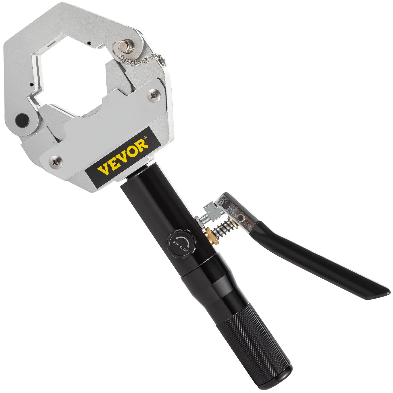 This hand-held integral hydraulic press A/C hose crimper is made for easy use. The hydraulic tool is designed with exquisite details, such as a pressure relief valve and no-leakage oil cylinder.