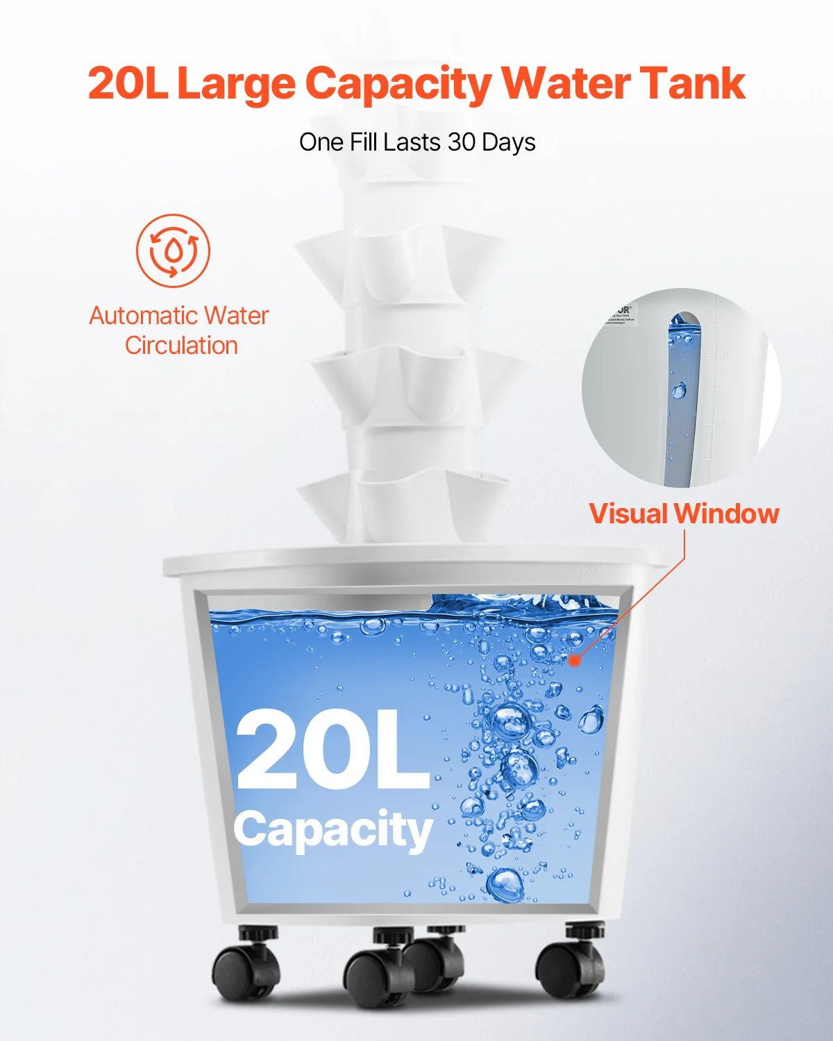 The 20L water tank needs only one refill per month. It comes with a visible water level window for easy monitoring. The DC micro-pump (7W, quiet operation) provides 600L/H flow and 2m/6.56ft lift height, ensuring continuous water circulation that keeps plant roots oxygenated, promotes healthy growth, and reduces water consumption compared to traditional methods.