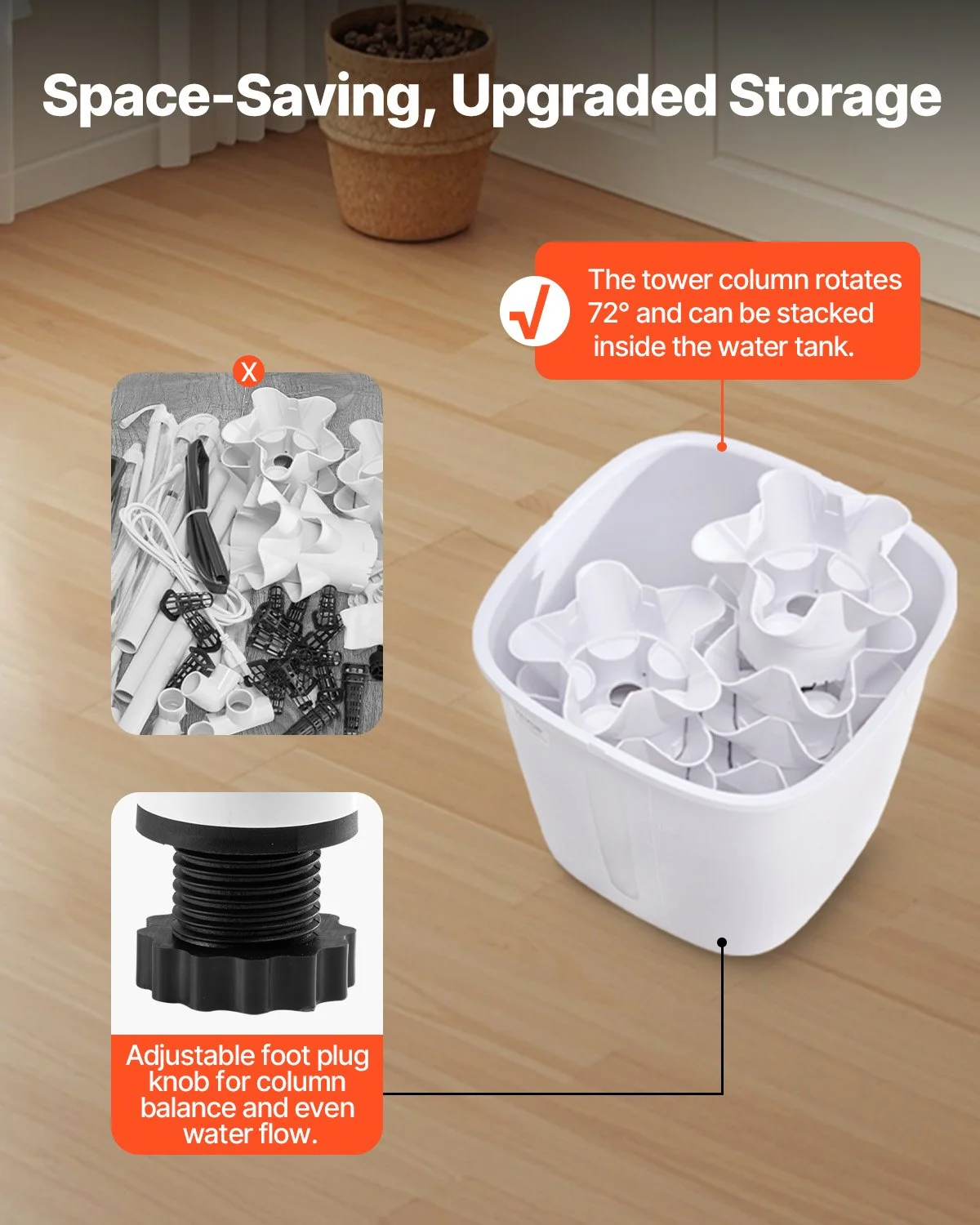 Equipped with a 16W LED grow light (96 LEDs) providing a 2808K natural light color temperature, the hydroponic tower ensures your plants thrive even in low light or winter conditions. The smart switch lets you easily adjust light duration, catering to the needs of various plants.