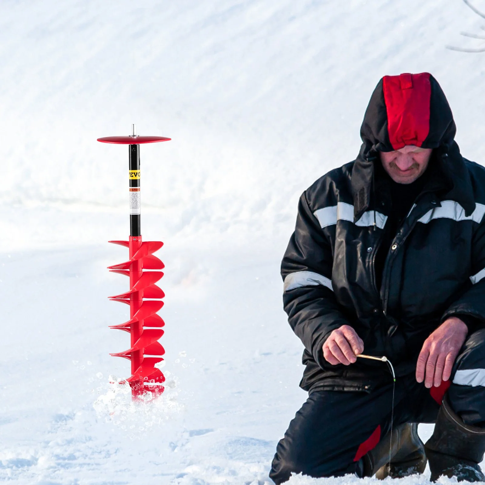 This ice drill is very suitable for ice fishing enthusiasts due to its professional design and lightweight. It can easily punch the _8" holes on the hard and thick ice surface, bringing convenience and fun to you.
