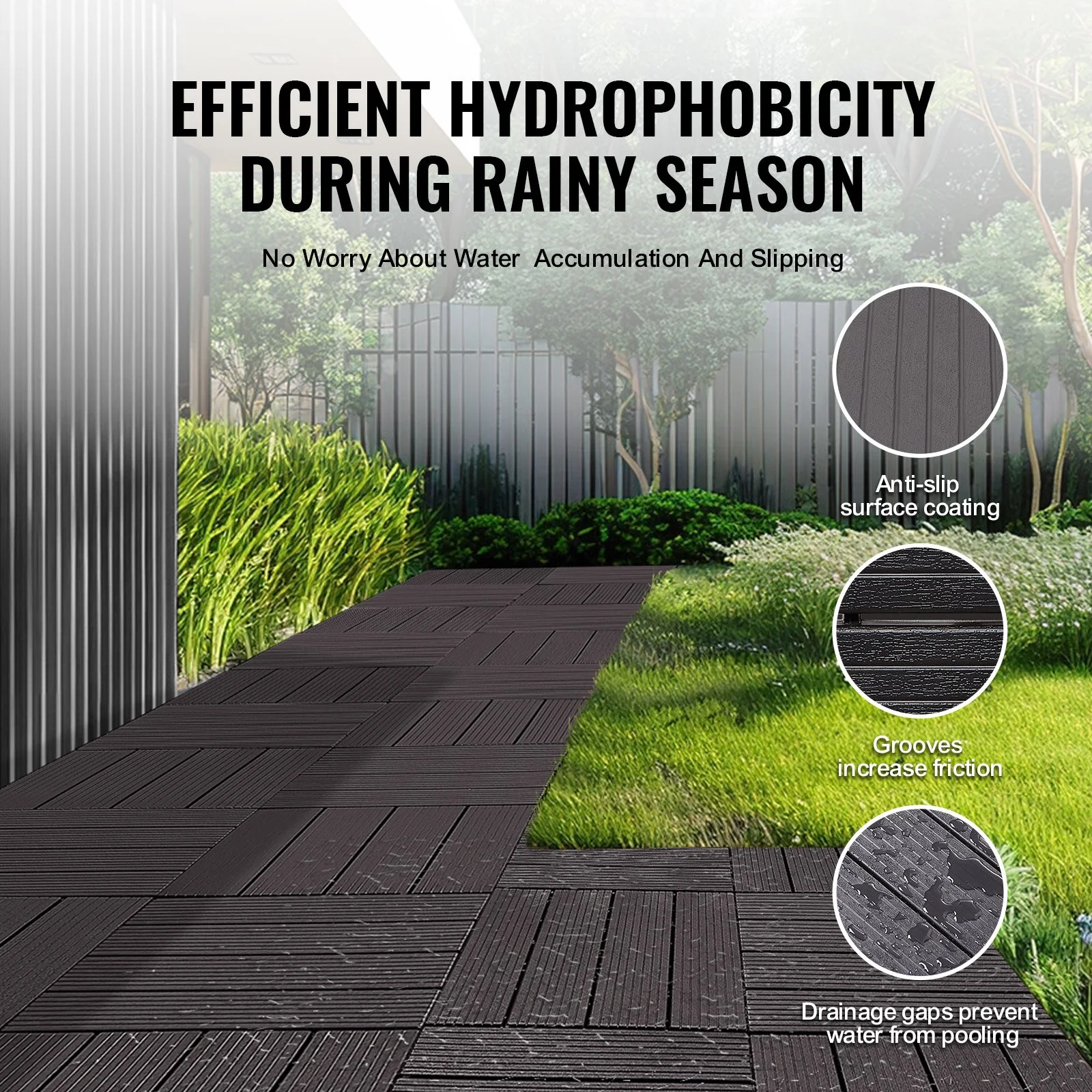 The surface features a special anti-slip coating, with grooves and drainage gaps to ensure quick water runoff during rainy seasons, preventing puddles and slips.