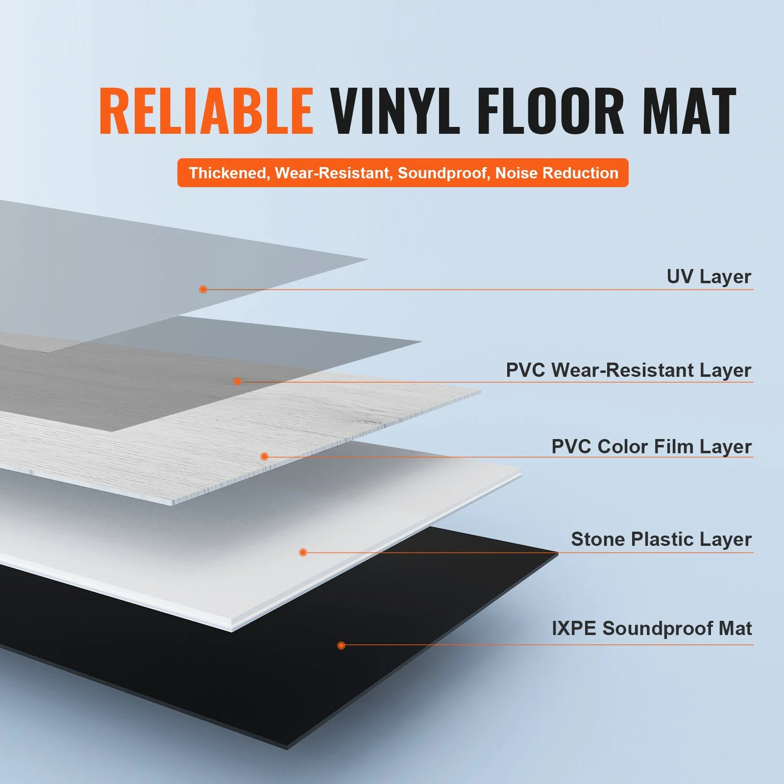 Featuring a wood grain appearance, the surface of this peel and stick floor boasts authentic and clear textures, with a smooth and sleek finish, creating a beautiful look reminiscent of real wood flooring to enhance the aesthetics of your home.