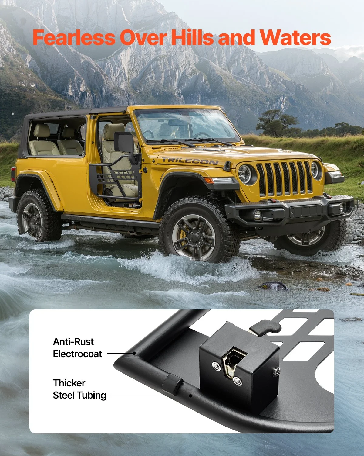Built with reinforced steel tubing and finished with an electrophoretic and textured coating, these doors provide exceptional durability and corrosion-resistance. Ready to withstand sand, rocks, and rain, they are your trusted companion for outdoor adventures.