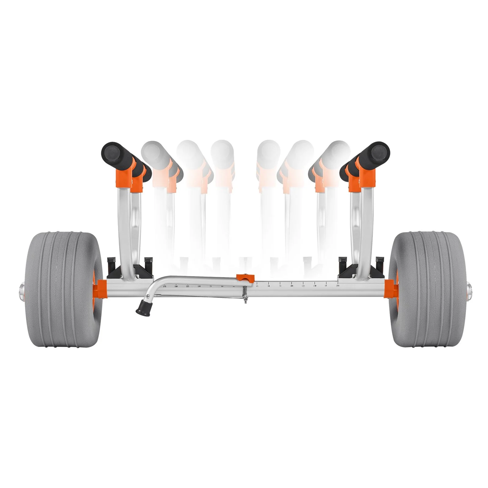 Adjustable 6.7-17.3 inch support bracket accommodates different boat sizes, fitting paddleboards, canoes, float mats, kayaks, and flat-bottom boats. Our kayak dolly ensures versatility for users