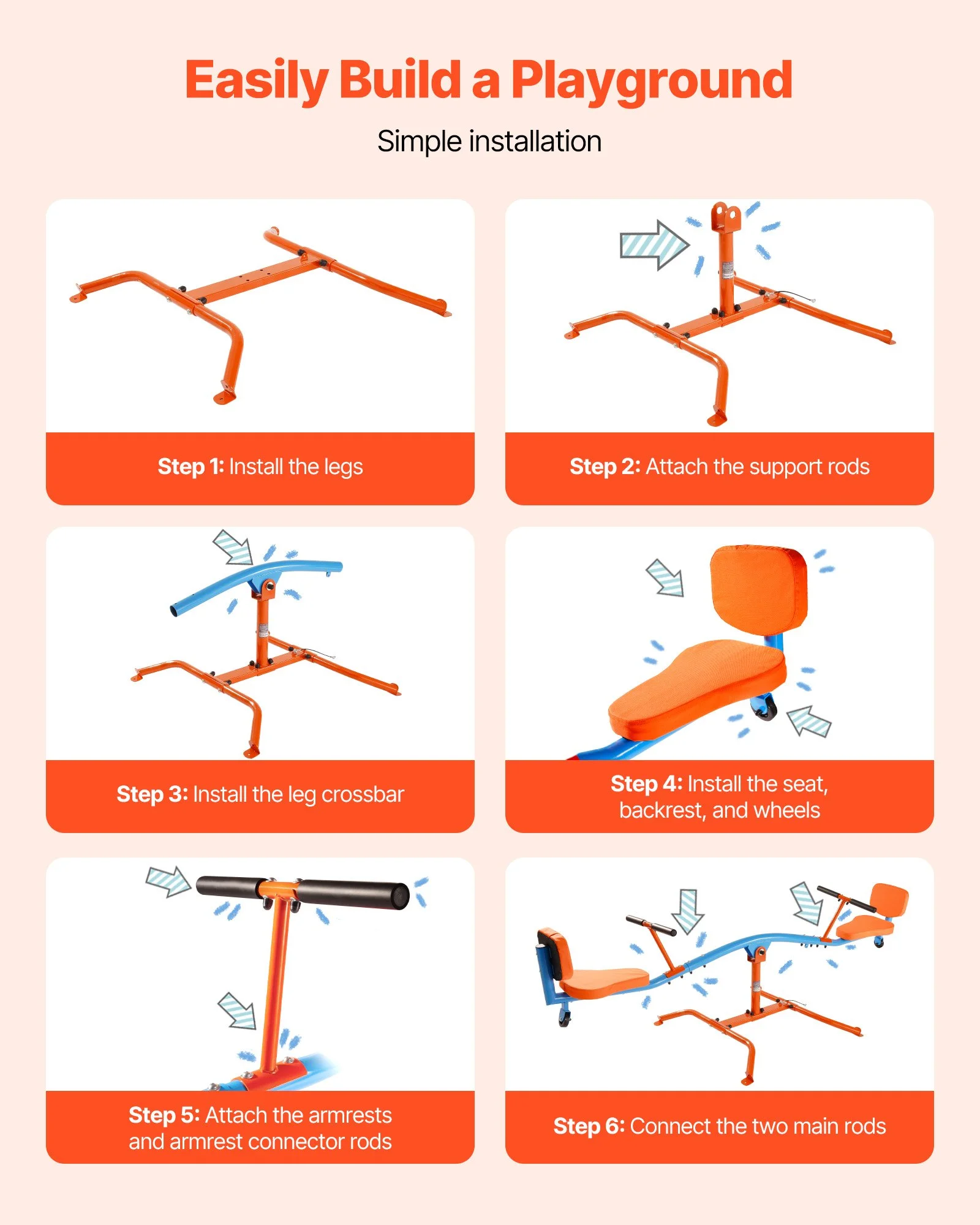 Simple, tool-free assembly! The rust-proof frame of our toddler seesaw is ideal for both indoor and outdoor use, providing endless fun wherever you play
