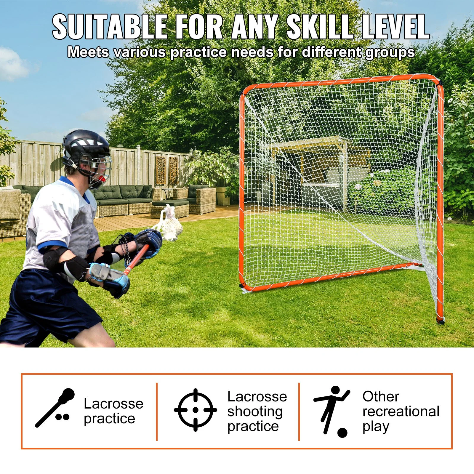 This quick easy setup backyard goal is suitable for all skill levels and can meet the practice needs of different individuals. It is highly suitable for beginners, intermediate, and advanced players for lacrosse practice, shooting drills, and other recreational activities.