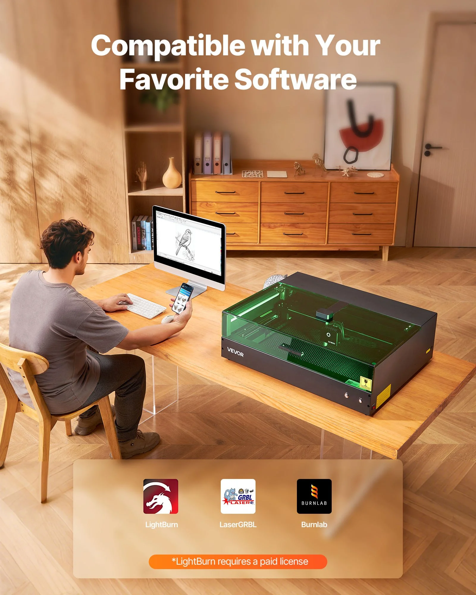 This laser engraving cutting machine supports LaserGRBL (Windows, for low-speed devices only), LightBurn (Mac OS/Windows, paid), and Burnlab. Ideal for beginners, DIY enthusiasts, and small studios