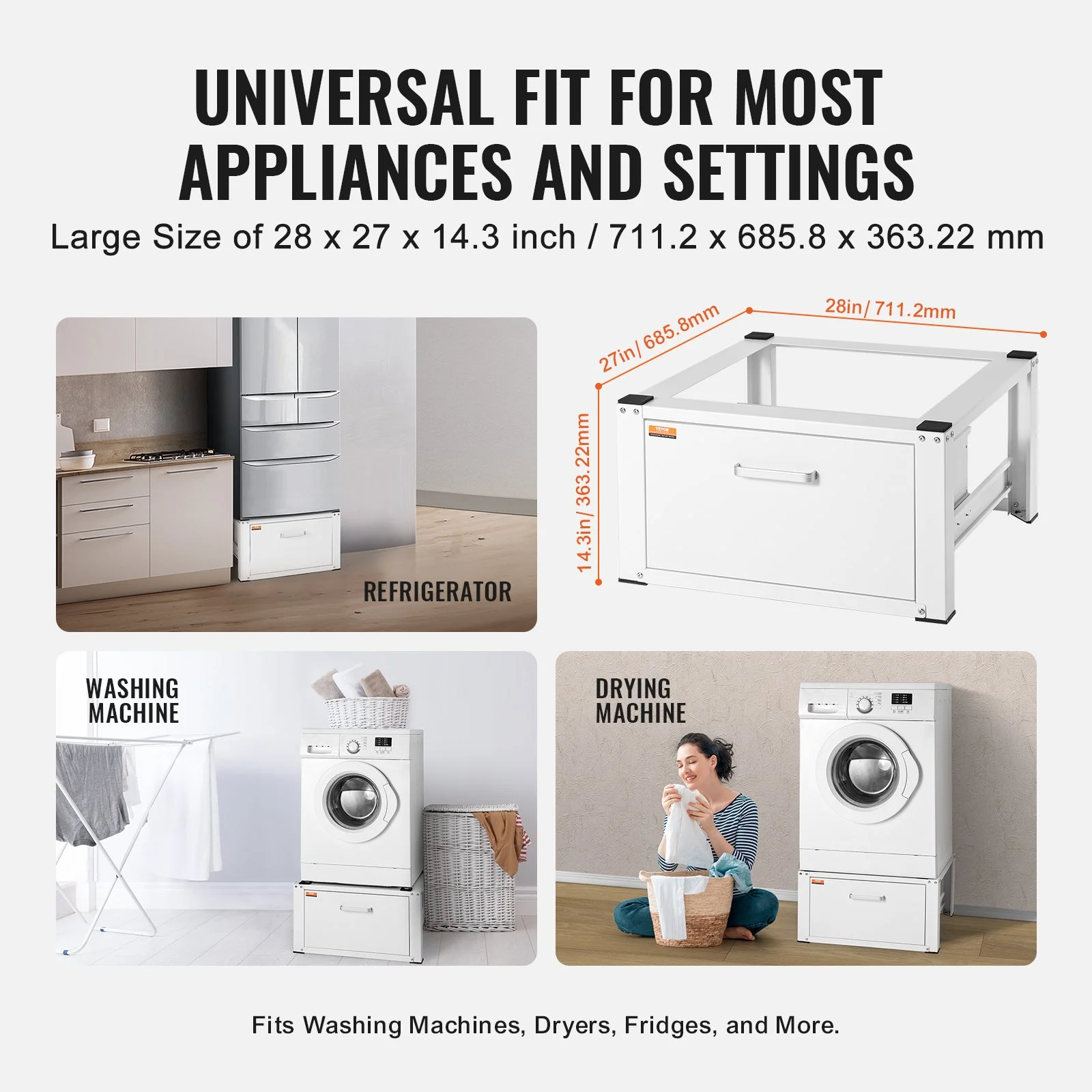 Made from SPCC cold-rolled steel plate, the pedestal is extremely robust and can accommodate washing machines weighing up to 660 pounds (299.4 kg).