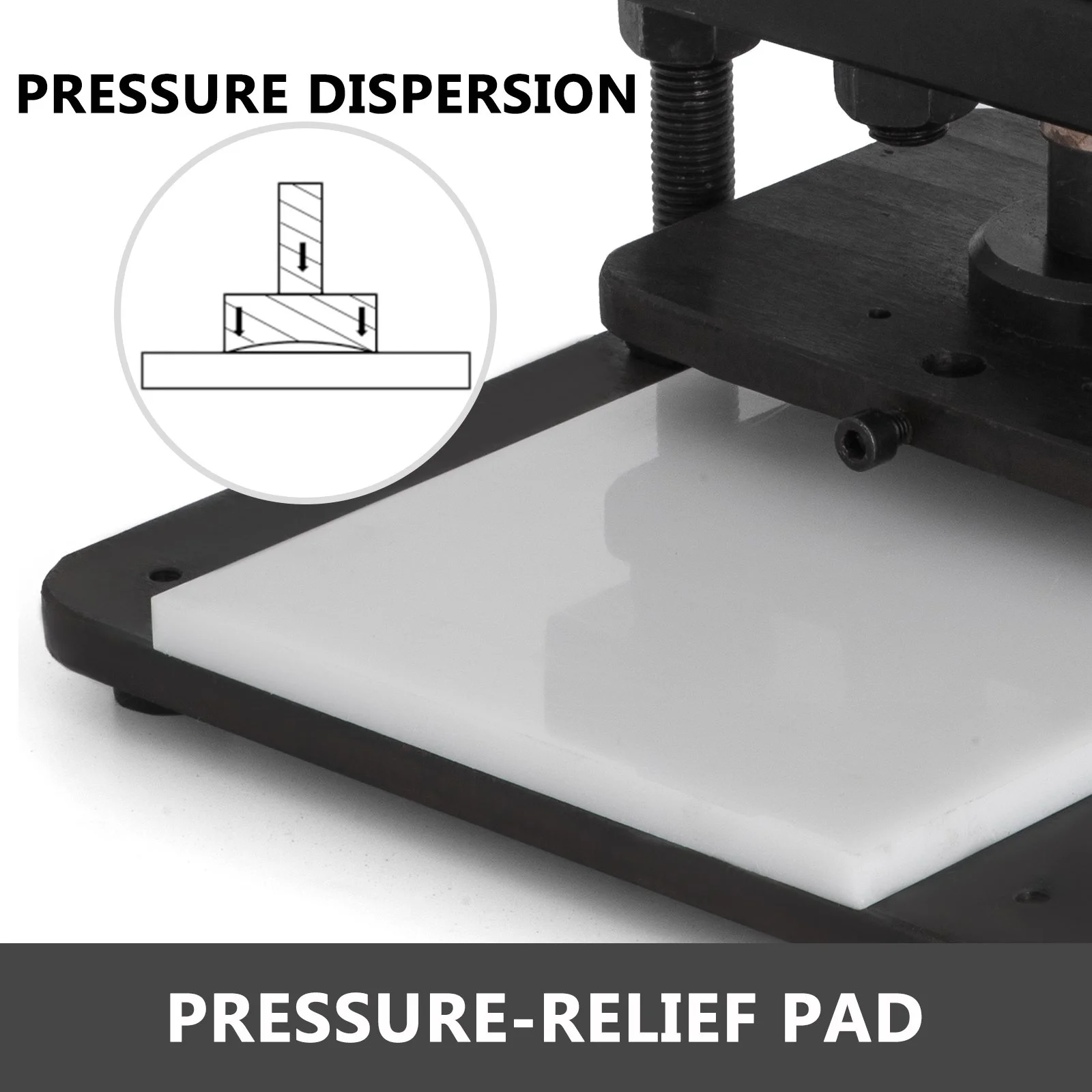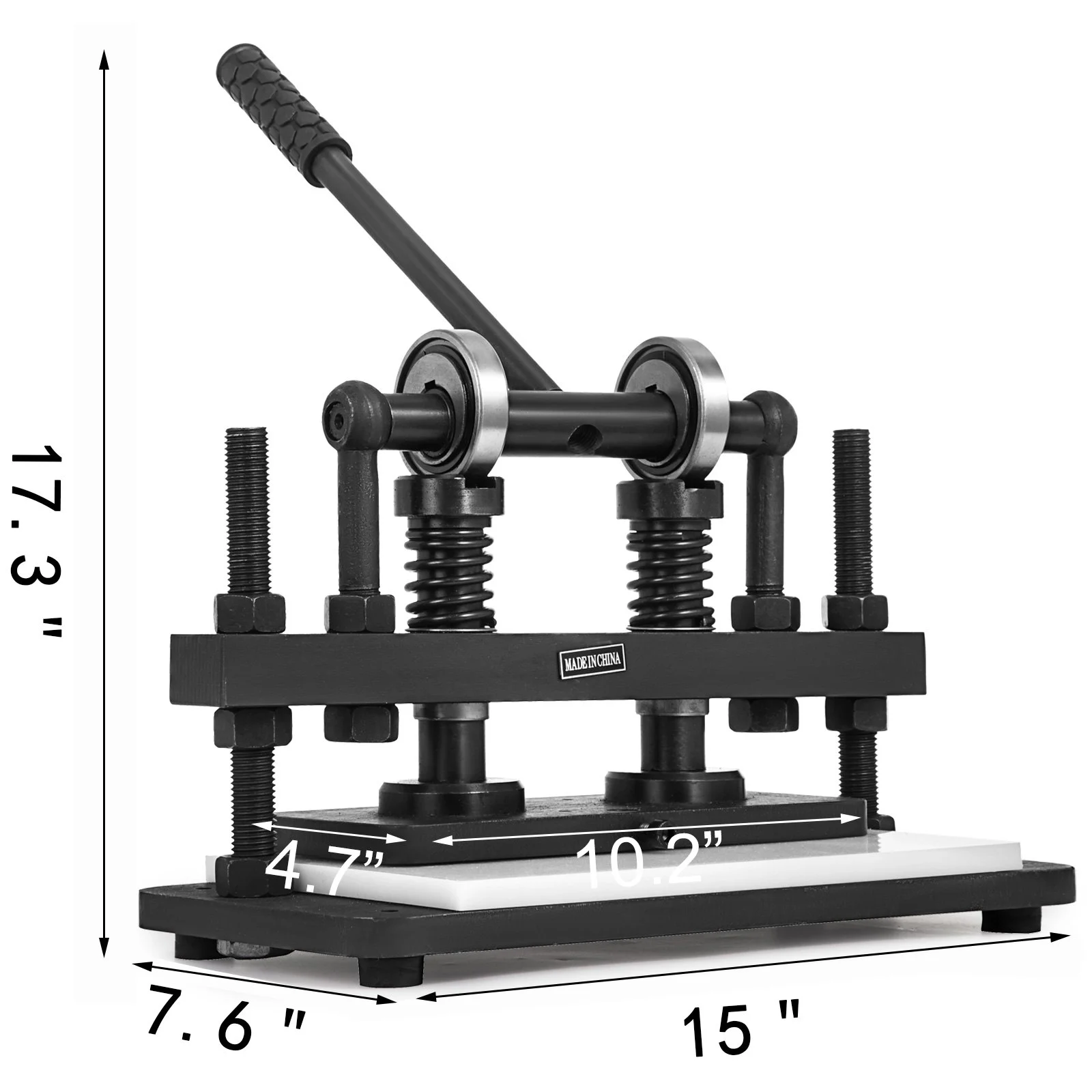 The leather embossing machine is integrated with a silicon manganese steel spring wire to provide increased stability during operation. The large premium manganese steel base plate with high tenacity also ensures strong stability.