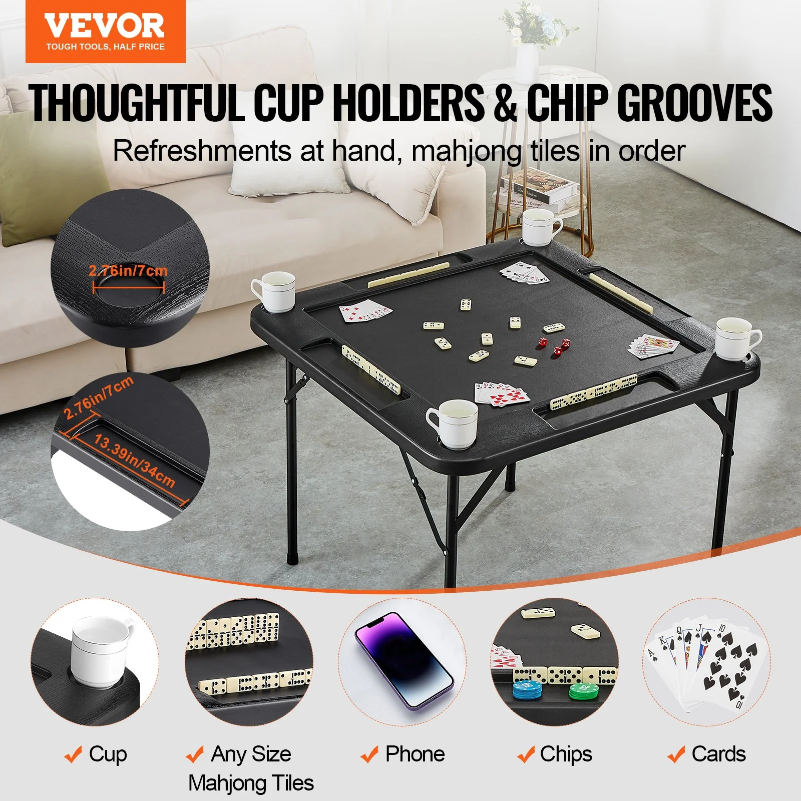 Complete with a set of dominoes, VEVOR portable poker table provides the perfect setting for entertainment with family and friends. A wonderful choice for gifting, it allows you to indulge in leisurely enjoyment and create unforgettable gaming experiences.