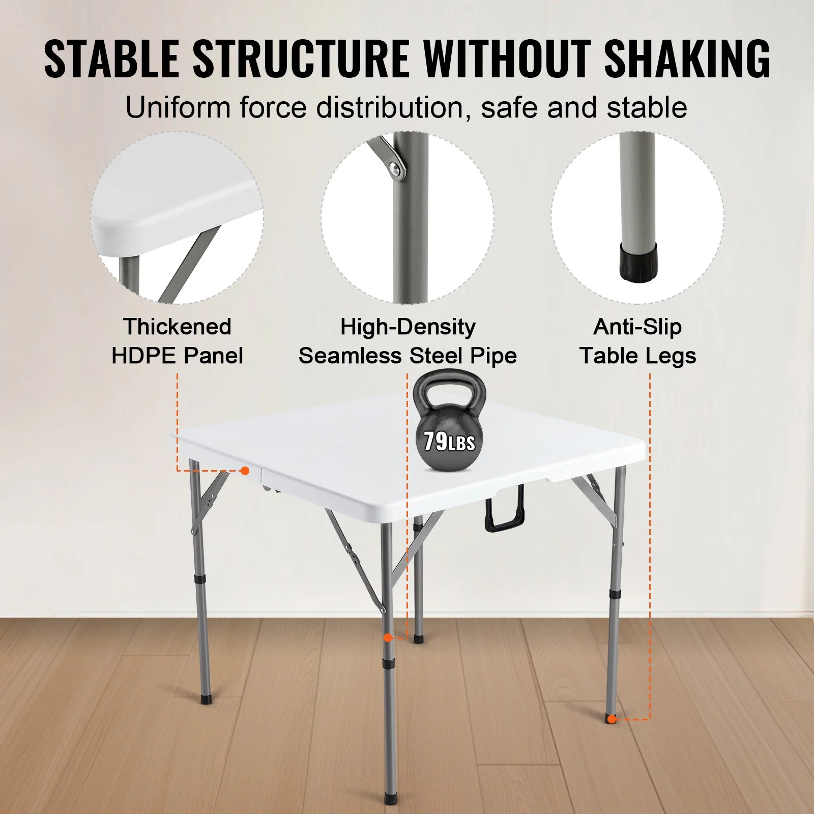 Our fold-in-half 4 player card table-top is made of high density polyethylene(HDPE), durable and waterproof. Its high-density seamless steel pipe is rust-resistant, while the non-slip foot pads enhance stability, reduce noise, and resist wear. With outstanding load-bearing capacity, it provides excellent stability during playtime.