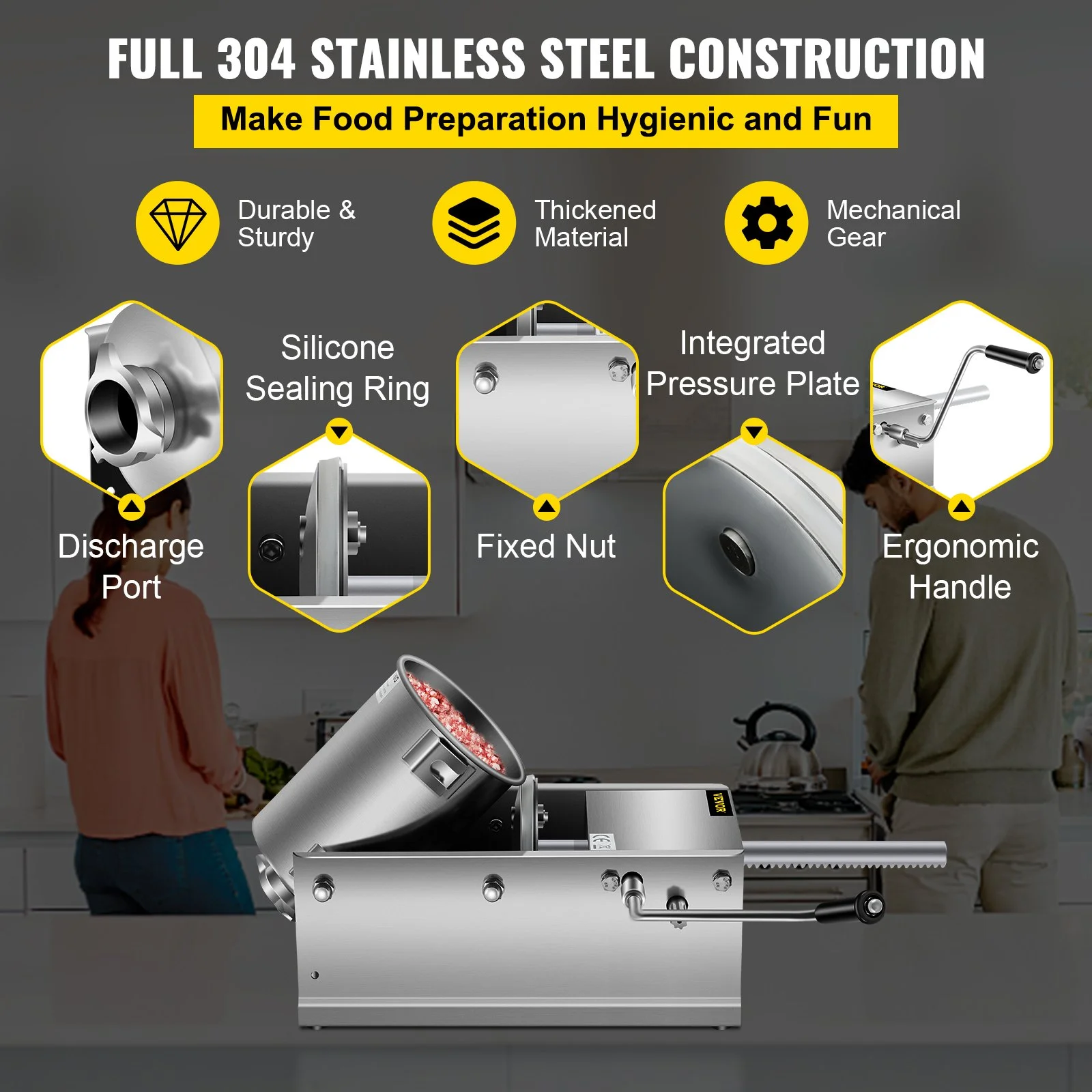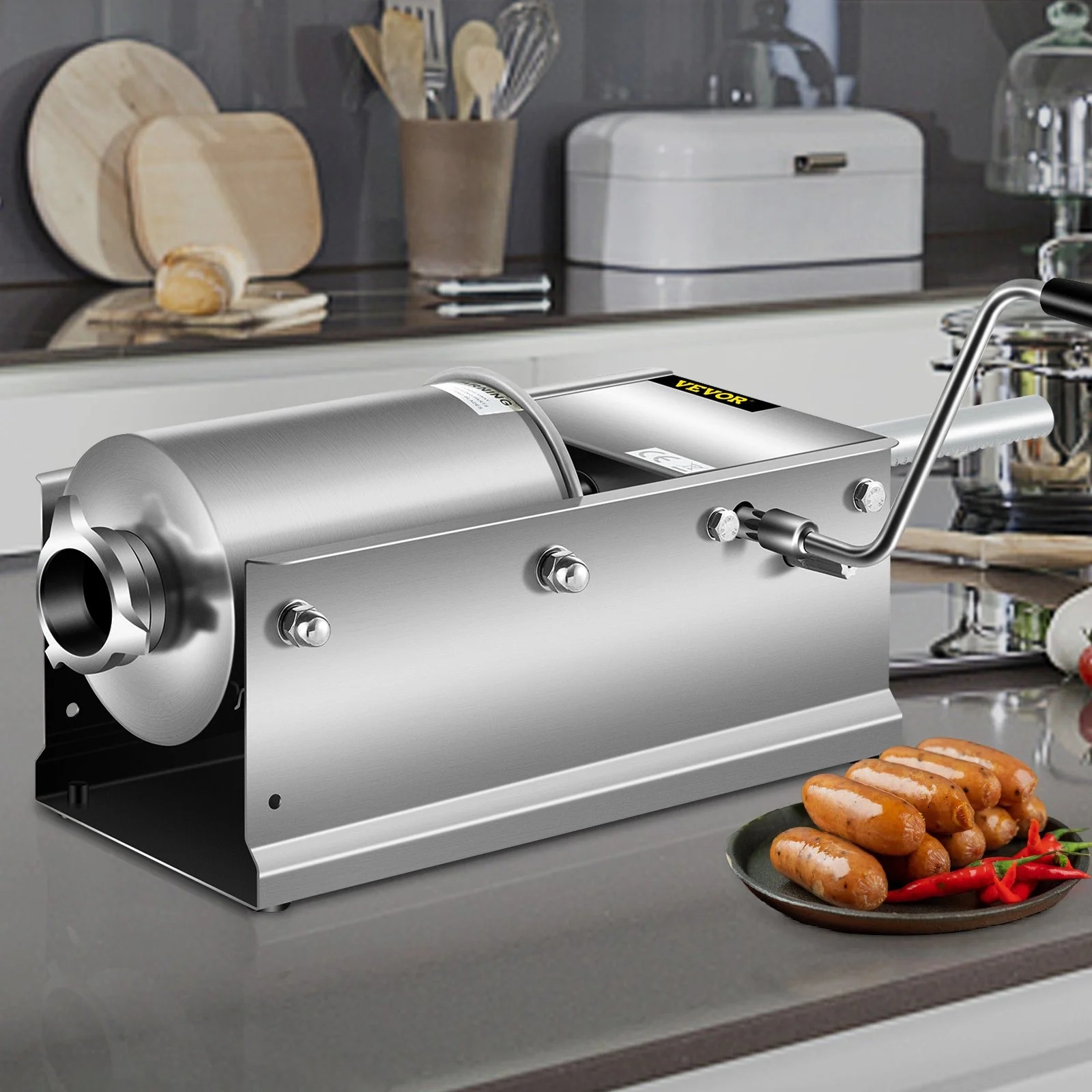 VEVOR Manual Sausage Stuffer, 5 L / 11 LBS Horizontal Sausage Machine, Dual-Speed Meat Stuffer, Made of Food-Grade 304 Stainless Steel, Includes 5 Stuffing Tubes, for Home Kitchen Restaurant Commercia