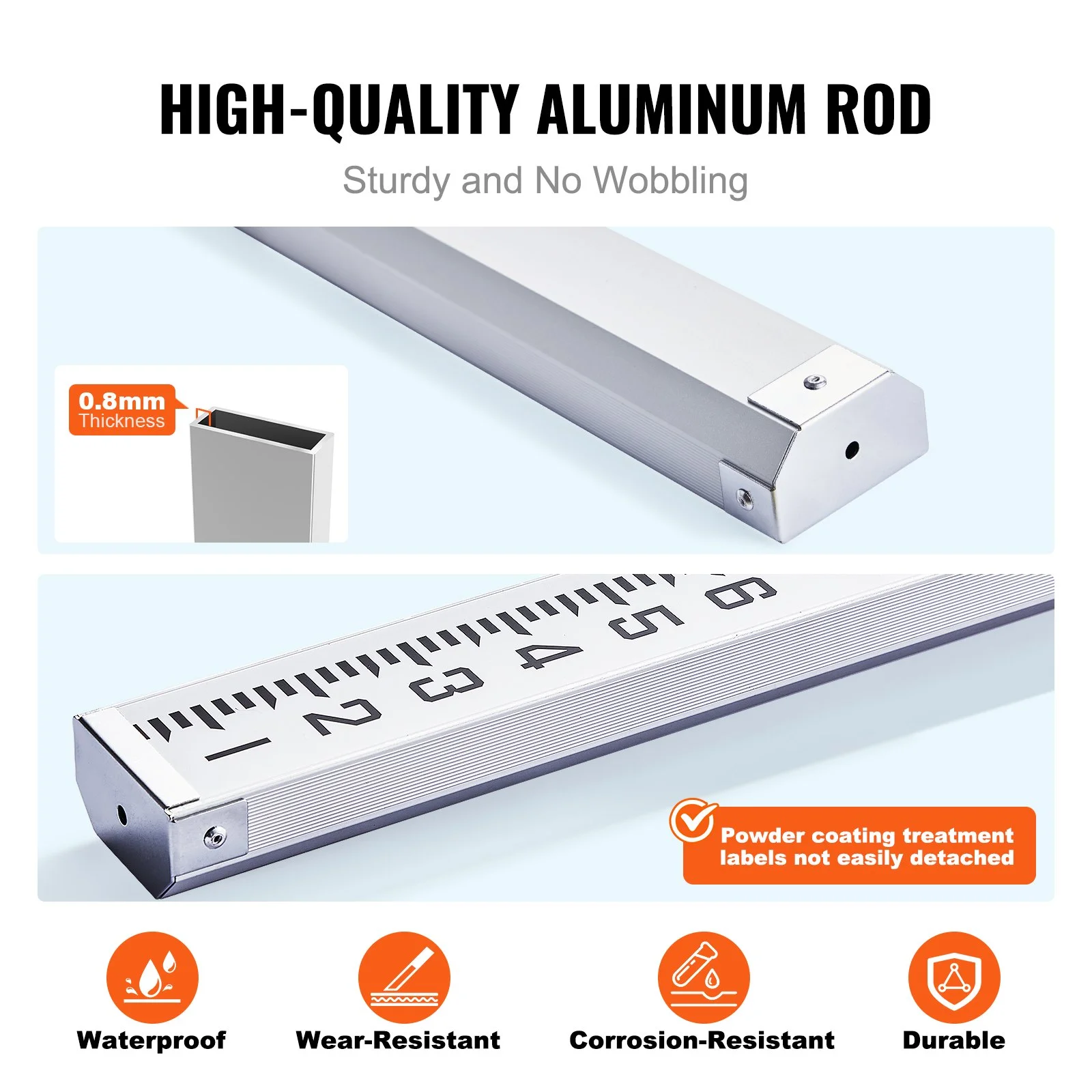 Made from 0.8mm thick anodized aluminum (6063-T5) with weather-resistant and corrosion-resistant ink markings that are durable and waterproof, suitable for tough job site conditions.