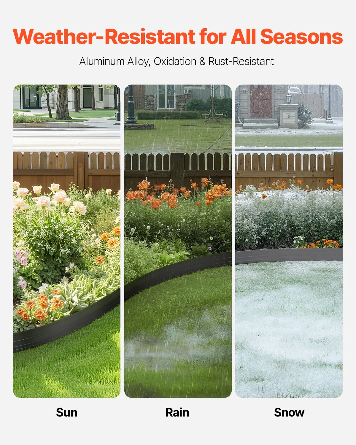 Constructed from high-quality aluminum alloy with a powder-coated, rust-resistant finish, this metal landscape edging stands up to harsh weather conditions. It resists fading, cracking, and rusting, making it ideal all-weather outdoor use.