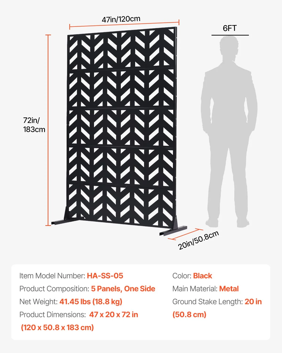 Enhance your living space with a stylish metal privacy screen that not only defines areas but seamlessly blends with any interior décor. This patio privacy screen adds a touch of elegance while creating a secluded, private space, providing you with both privacy and aesthetic appeal.