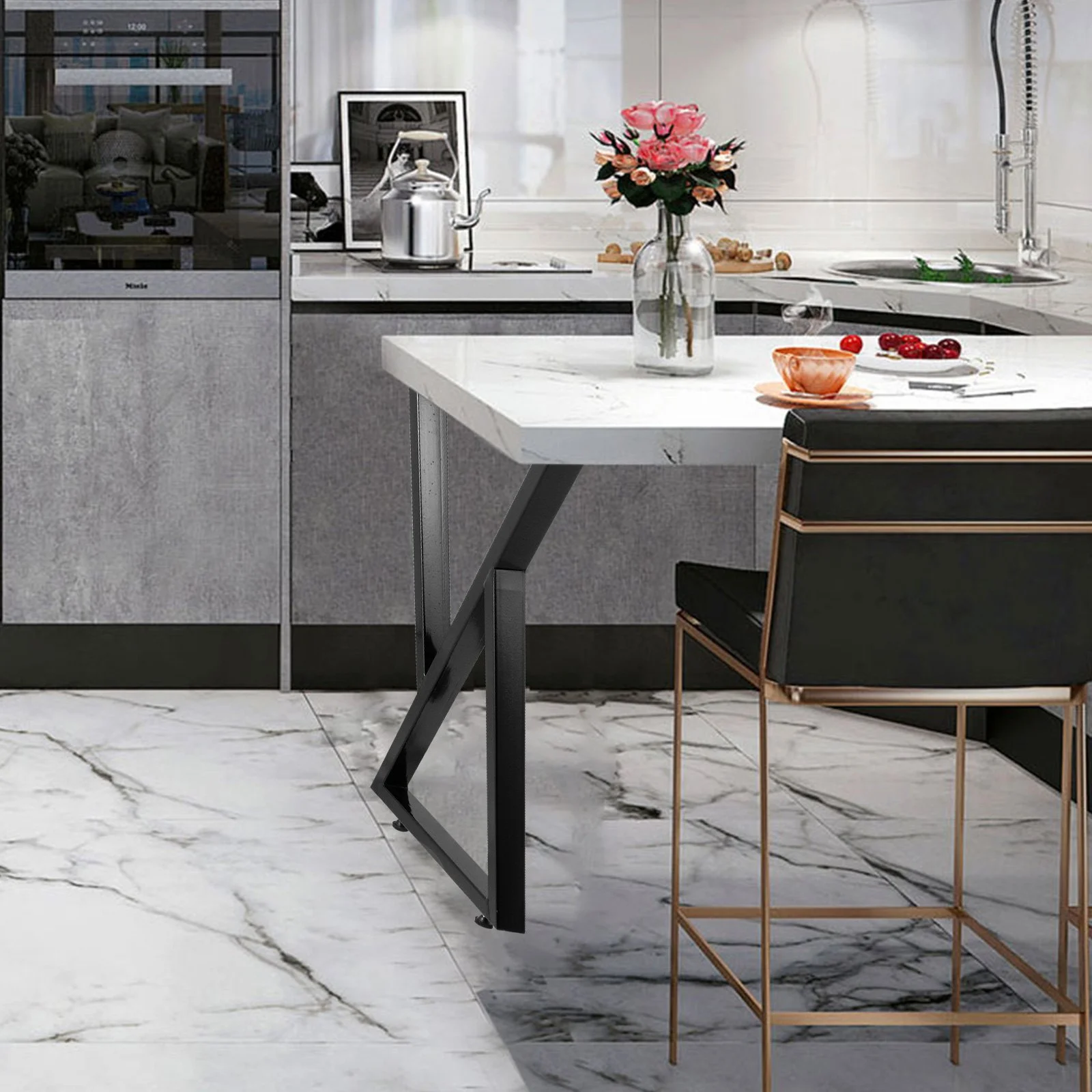 Black; Height: 28"; Width: 20"; Amount: 2; These dining table legs are constructed with steel pipes for longer using time.