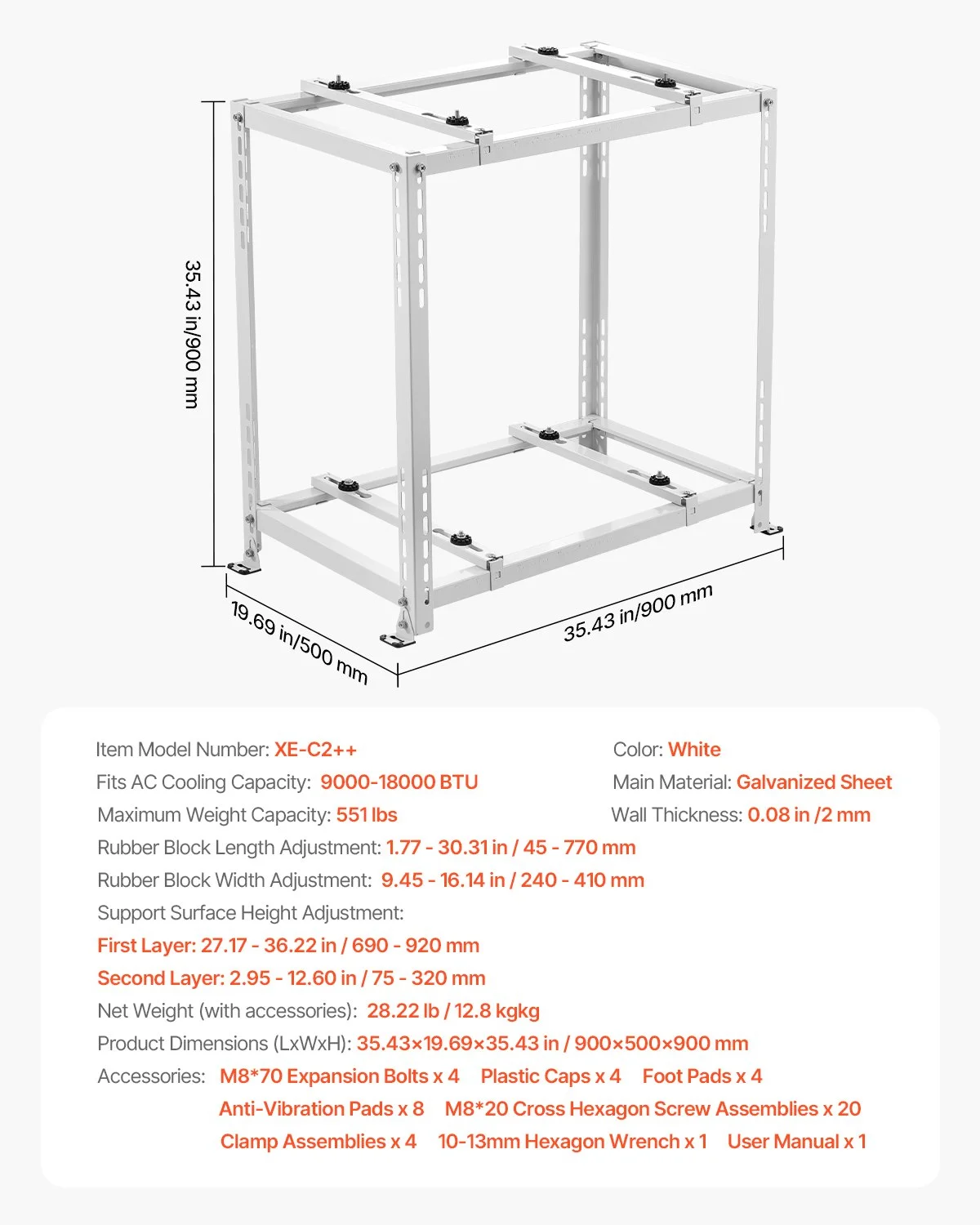 The mini split ground stand is made from galvanized steel with a powder-coated finish, offering exceptional durability and corrosion-resistance to safeguard your AC from harsh weather conditions