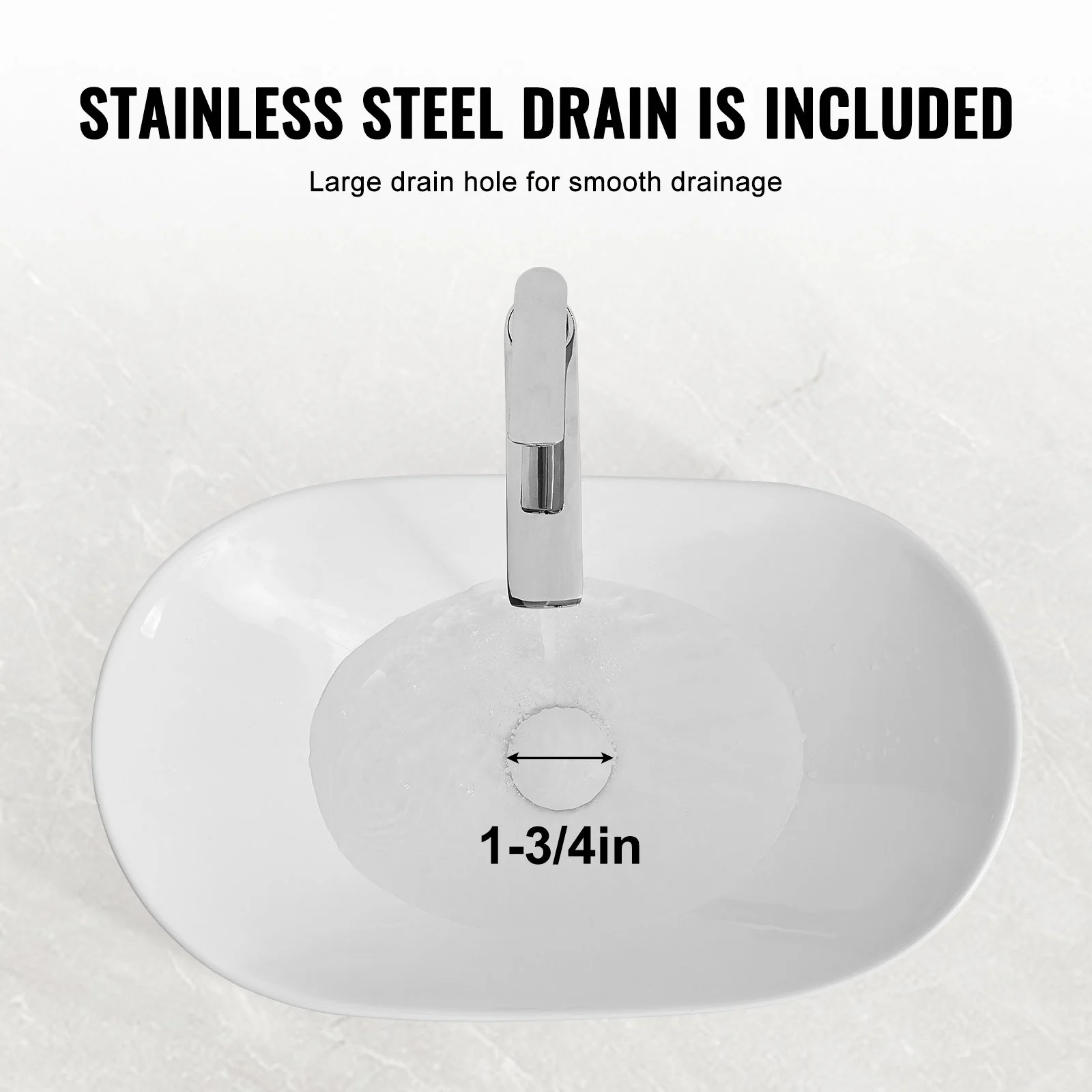 Featuring a standard 1-3/4 inch drain opening, this sink prevents overflow even with heavy water use. Equipped with a stainless steel drain, it ensures no leakage during water retention and provides efficient, blockage-free drainage.