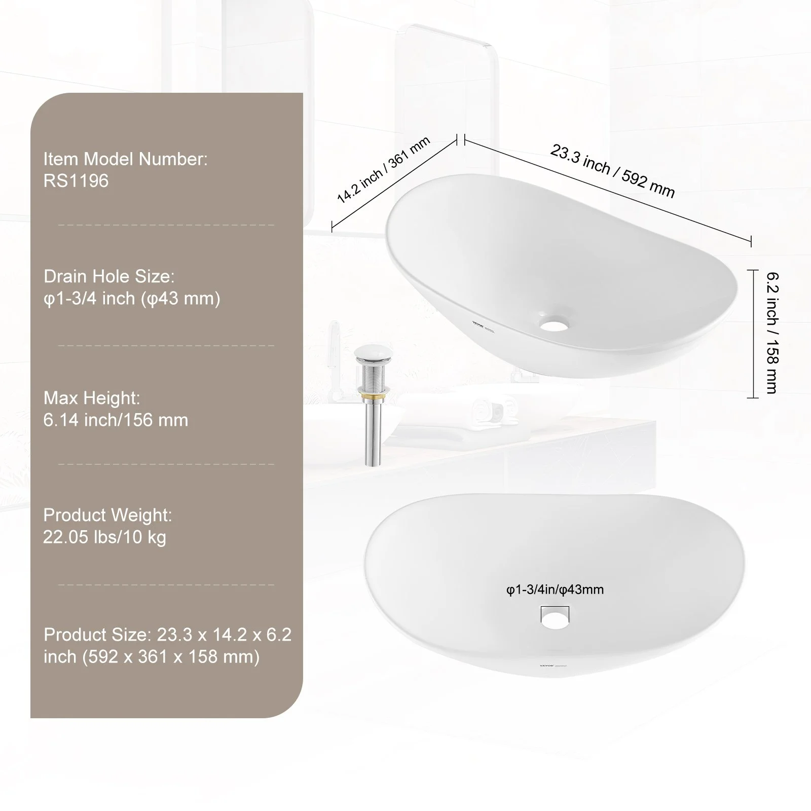With a depth of 6.22 inches, this sink effectively prevents water splashes from escaping the sink, keeping your countertop dry.