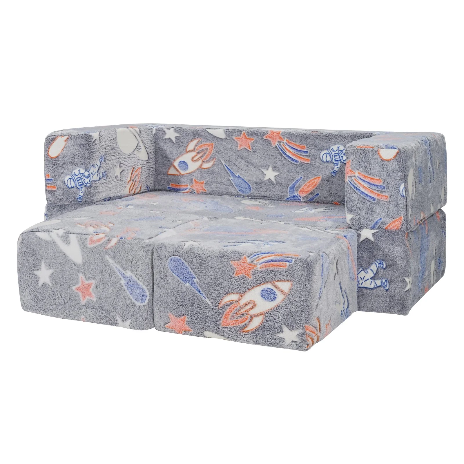 The kids chair features glow-in-the-dark fabric that absorbs light during the day and releases it in the dark, which sparks children's curiosity and exploration, adding fun to children's room.