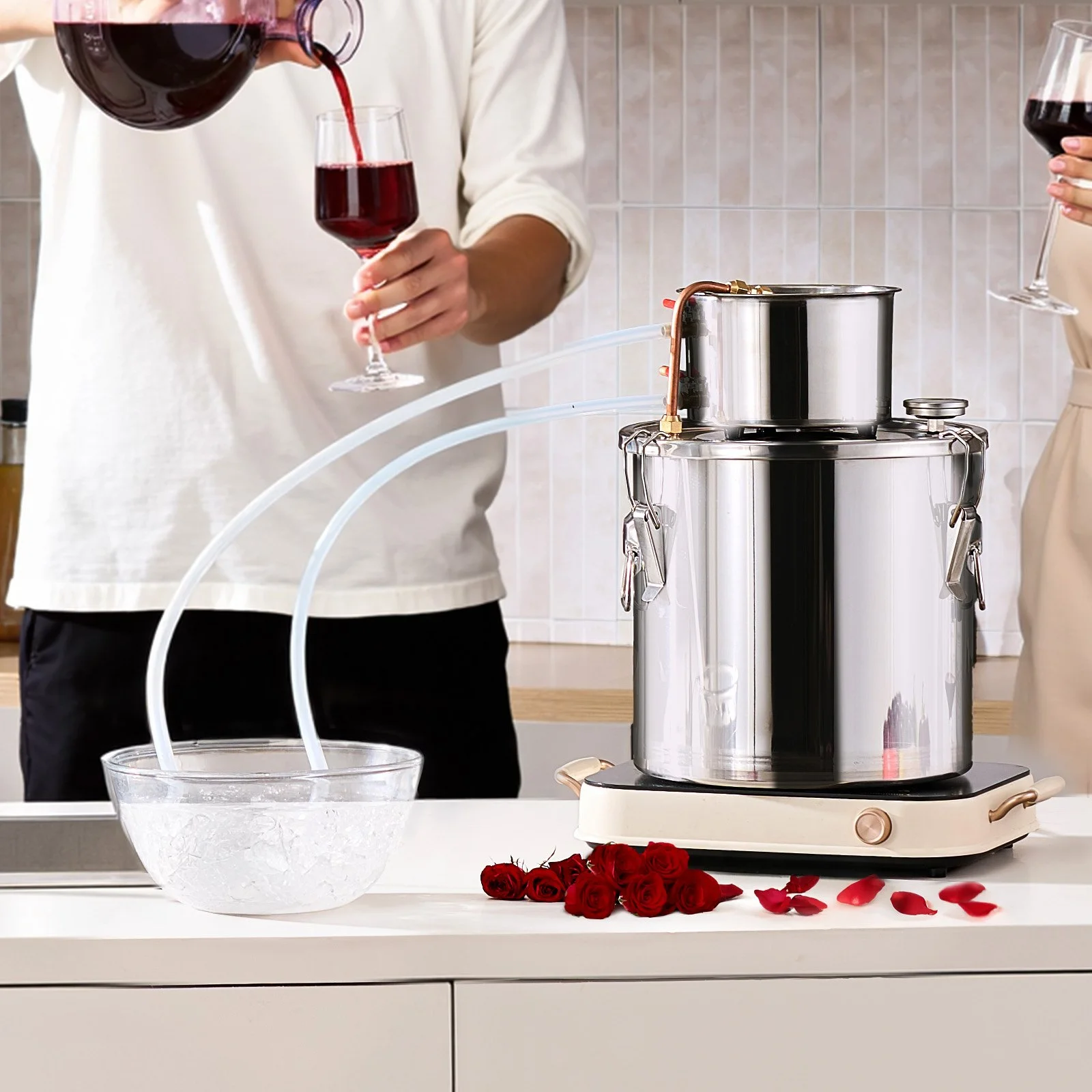 This simple distillation unit is ideal for beginners to brew and produce fruit wines, rum, whisky, vodka, distilled water, beer, ethanol, and other distilled products at home, showcasing your sincerity and craftsmanship during holidays and gatherings.