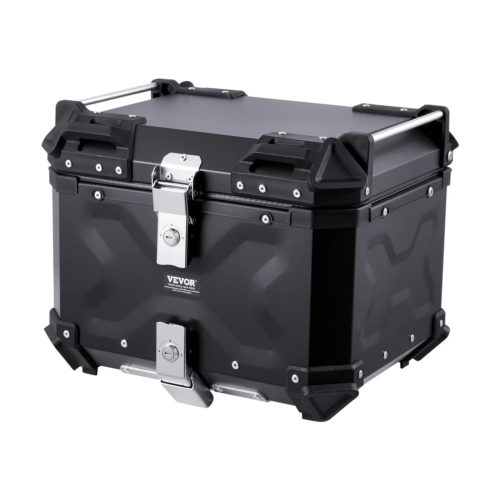 Our motorcycle storage box is built tough, made from 1.2 mm thick aluminum alloy that is wear & drop-resistant. Each corner is reinforced with bumpers, making it a suitable companion for your travels. Inside the box, the removable leather padding offers cushioning to guard your belongings, even under heavy impact.