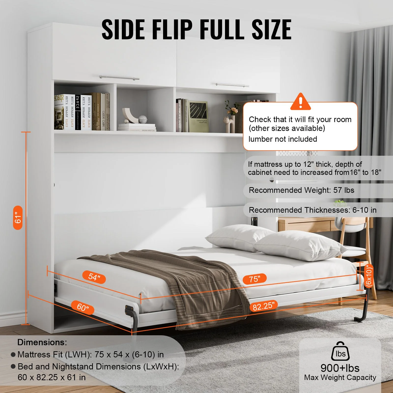 Designed for horizontal FULL mattresses, dimensions are 60"x82.25"x61", suitable for mattresses measuring 75"x54"x(6-10)". The flipping direction is sideways, allowing for convenient access and effective use of bedroom space.