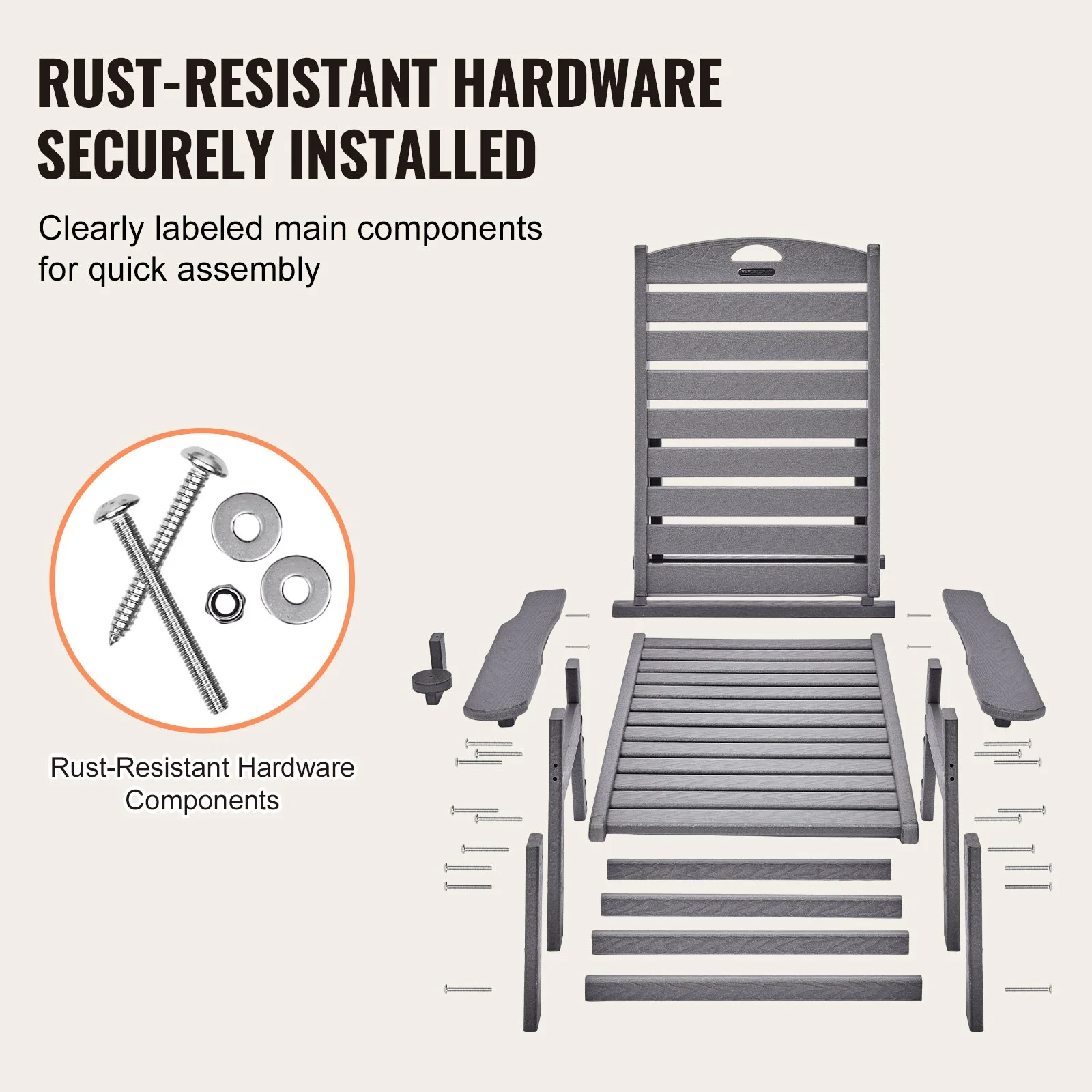 Equipped with rust-resistant hardware and key parts labeled with numbers, along with detailed installation instructions, this outdoor pool lounge chair can be assembled quickly and easily, getting you ready to relax in no time.