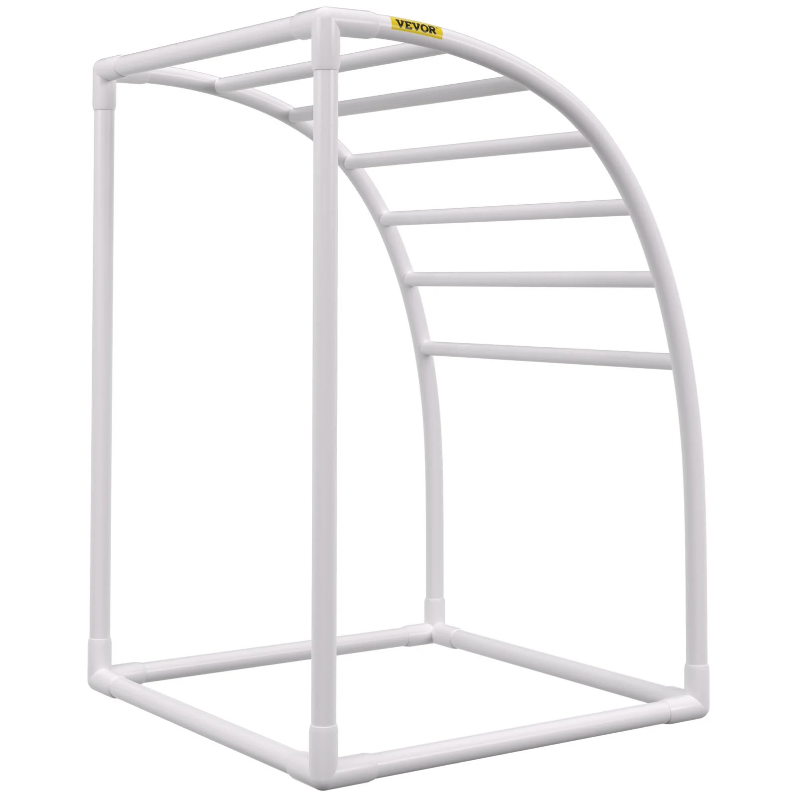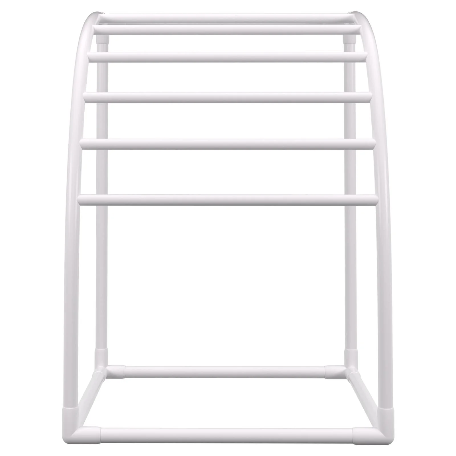 Our pool towel rack is crafted from heavy-duty PVC material that effectively resists rust and corrosion for years. The sleek, white PVC structure also blocks UV rays, preventing fading and making it easy to clean.