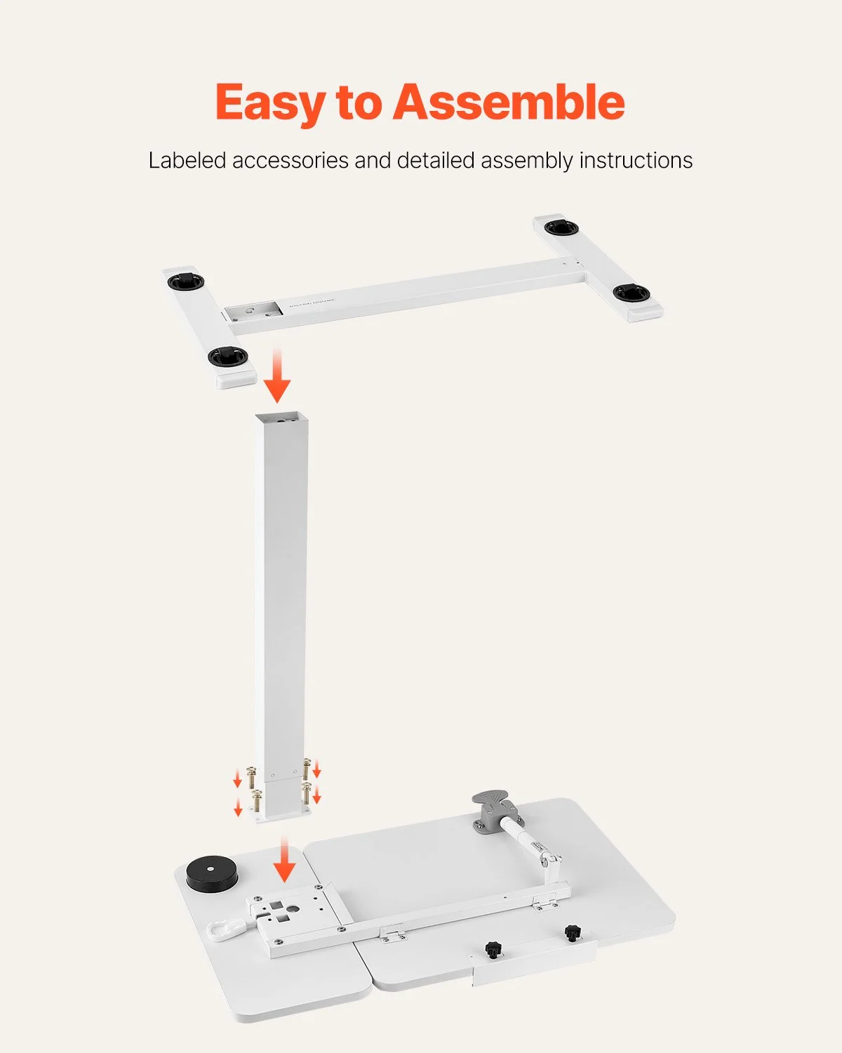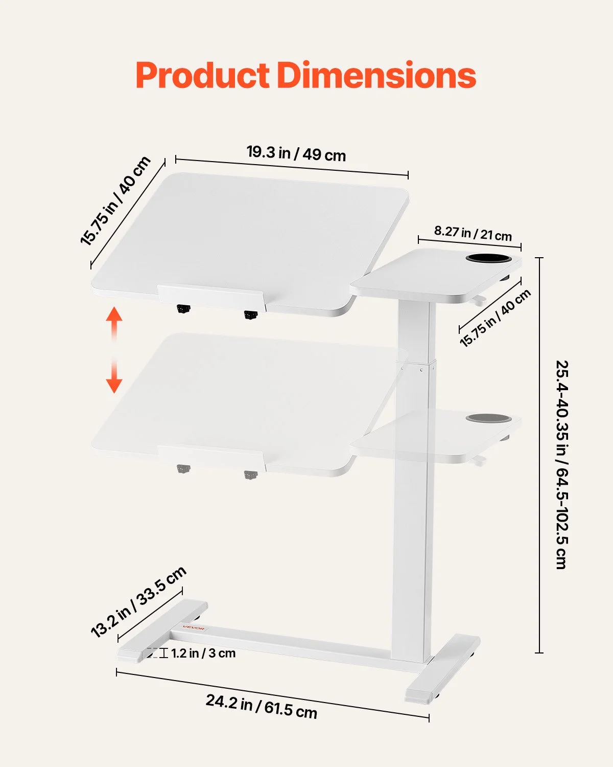 With a smooth hydraulic system, this overbed table adjusts from 25.4 in / 64.5 cm to 40.35 in / 102.5 cm - ideal for sitting and standing. Plus, the tabletop tilts 0-60°, making it ideal for reading, working, or drawing.