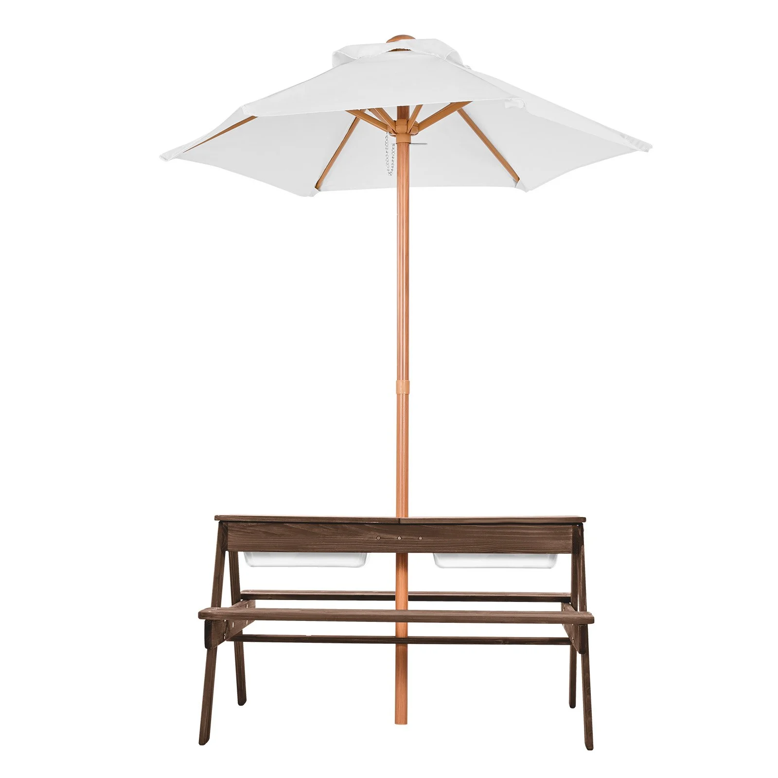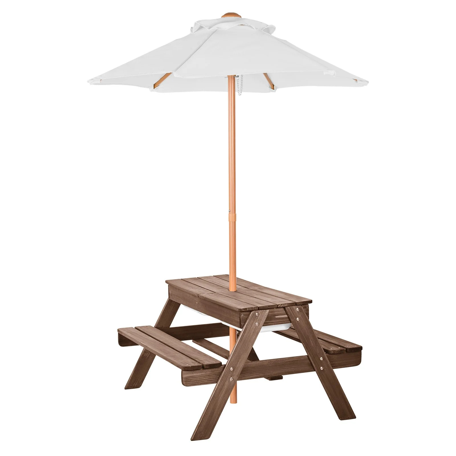 The tabletop features a removable design, allowing flexible adjustments to switch between a picnic table, sand table, or water table as needed. Whether enjoying a meal outdoors or engaging in creative sand and water play, this patio dining furniture is designed to meet a variety of activities, making every experience fun and interactive