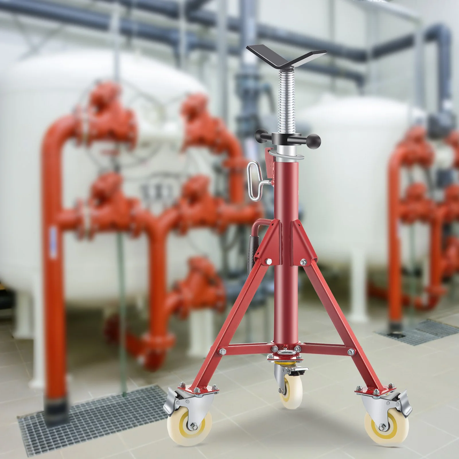 ADJUSTABLE CONSTRUCTION- The height of this pipe jack stand is adjustable from 28" to 52" (The height doesn't include casters). Durable V-head supports the pipe of 1/8 to 12 inches/0.32 to 30.48 cm.