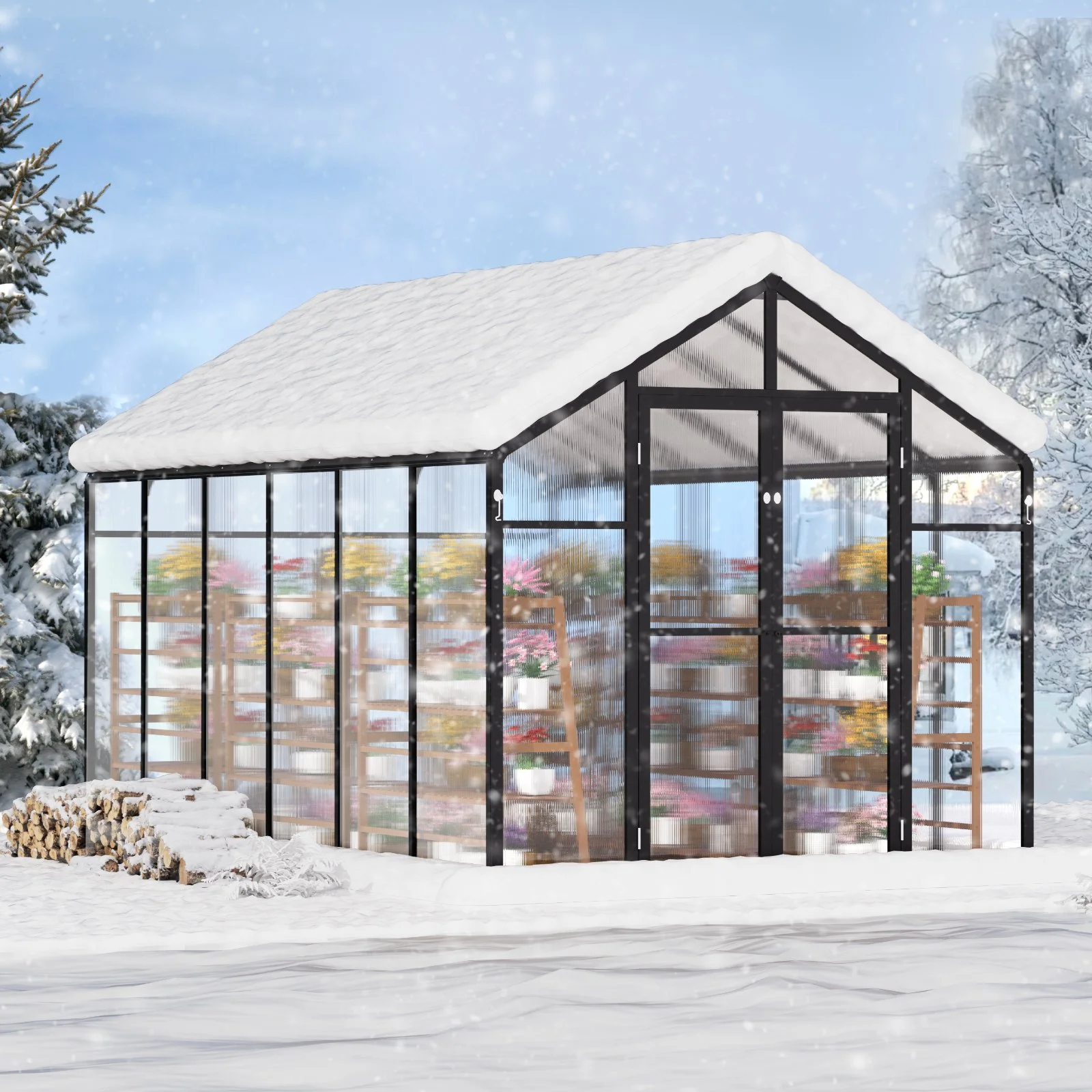 The polycarbonate greenhouse is equipped with a thicker and stronger black aluminum frame, which is lightweight yet highly durable, with stainless steel screws for a longer service life and better resistance to harsh weather conditions.